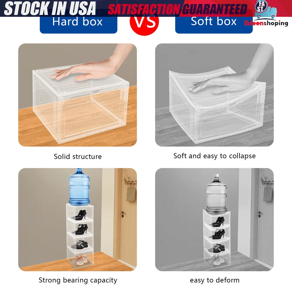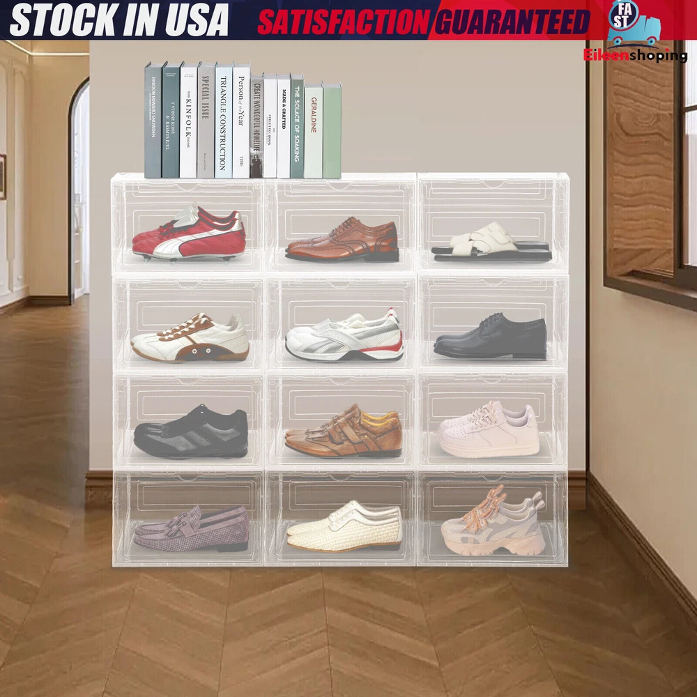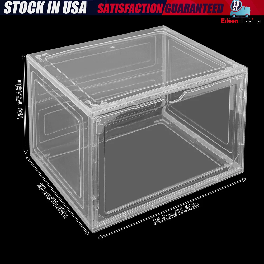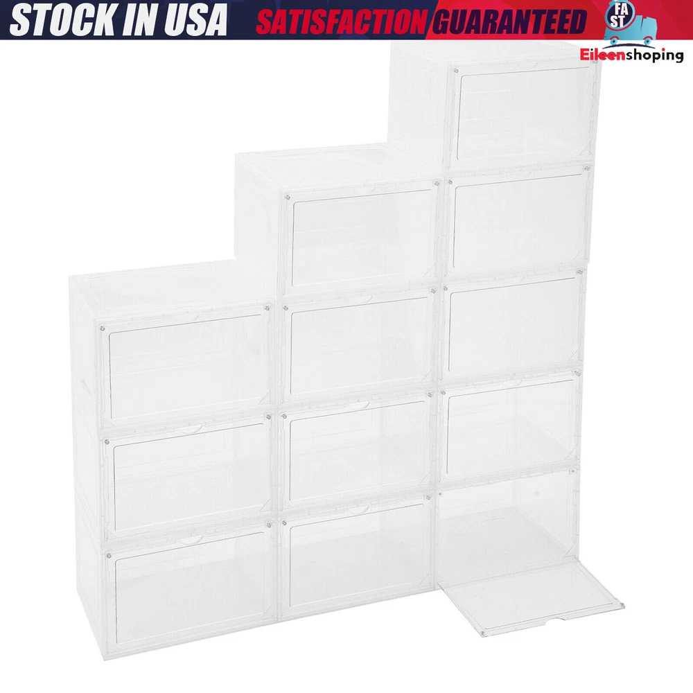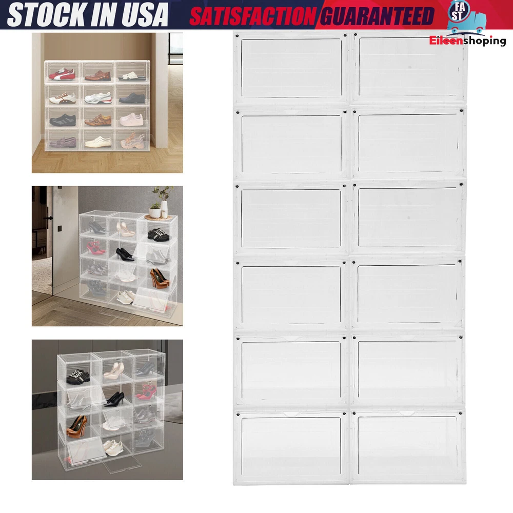 Specifications Color: Clear Material: PP, Acrylic Number of Items: 12 Door Opening Direction: Side Mount Type: Free Standing Assembly Required: Yes Each Product Size: 34*27*22cm/13.39*10.63*8.66in Packaging Size: 41.5*36.5*26cm/16.34*14.37*10.24in Weight of Each Shoe Box: 0.65kg/1.43lbs Gross Weight: About 8.7kg/19.18lbs Package Included 12*Stackable Shoe Boxes 1*English Manual Other Needed Accessories 12Pac Stackable Shoe Storage Boxes Clear Shoe Organizer Container Front Drop Lid Description This set of sturdy, transparent, and beautiful stackable shoe boxes will be your ideal choice for storing and displaying running shoes, sneakers, and other shoes. It is made of high-quality PP and acrylic, with a smooth and glossy surface while being sturdy and durable. The stackable design and strong structure allow the products to be easily stacked to form a shoe cabinet, saving you space and making it an excellent solution for shoe organization. Key Features Build to Last: The products are made of PP and acrylic which is resistant to corrosion, abrasion, and deformation, giving the products a clear and good appearance, and a long service life. Stackable Design: The buckles on the top and the flat surface allow the products to be stacked easily and quickly. You can stack them to form a large cabinet for your shoes, books, or other items. Easy to Use: These transparent shoe boxes with flap doors make it easy to reach or store your own shoes, even if the products are stacked. Proper Size: The 13.39*10.63*8.66 inches size allows the products to easily accommodate various sizes and types of shoes such as sneakers, sandals, casual shoes, slippers, and so on. You can also use it as a bookcase or to store other items. 12 Pieces in One Set: One set comes with 12 shoeboxes, allowing you to freely combine the combination shoe cabinet you need according to the actual room situation and the number of shoes. Lightweight: Each shoebox weighs only 1.43 lbs, allowing you to move, carry, and stack them easily. Easy to Clean: The smooth surface, flip cover, and simple structure allow you to easily clean these shoeboxes with a damp cloth. Details Sturdy Magnet: It comes with a strong magnetic attraction to allow the door to close tightly for a good seal, protecting shoes from dust, moisture, and other substances. In addition, you can use a screwdriver to adjust the magnetic force by turning the magnet screws yourself. Burr-free Edges: Exquisite workmanship gives the products a smooth edge to narrow the assembly gaps and improve the stability after being stacked. Application The products are suitable for closets, bedrooms, bathrooms, laundry rooms, craft rooms, utility rooms, offices, game rooms, and garages, etc. for organizing shoes, scarves, clothes, purses, crafts, toys, books, games, cosmetics, tools, boards, hats. Specifications Color: Clear Material: PP, Acrylic Number of Items: 12 Door Opening Direction: Side Mount Type: Free Standing Assembly Required: Yes Each Product Size: 34*27*22cm/13.39*10.63*8.66in Packaging Size: 41.5*36.5*26cm/ 16.34 * 14.37 * 10.24 in Weight of Each Shoe Box: 0.65kg/1.43lbs Gross Weight: About 8.7kg/19.18lbs Package Included 12*Stackable Shoe Boxes 1*English Manual Other Needed Accessories Notes Please check the size carefully before ordering. Please allow the slight color difference caused by the shooting light and 1-3cm error due to manual measurement, and make sure you do not mind before you order. Payment Delivery details Terms of sales About us Contact us Payment We accept ebay payment 。 Fees such as import duties, taxes are not included in the item price or shipping costs. These charges are the buyer's responsibility. Delivery details Shipping: 2-9 working days to: USA Terms of sales We maintain high standards of excellence and strive for hundred percent customer satisfaction. Feedback is very important to us. We hope that you contact us immediately before you give neutral or negative feedback, so that we can address your concerns. It is impossible to address issues if we do not know about them! About us Your satis faction is our ultimate goal. We work hard to earn your trust and future business. Our certified technicians have tested each item before shipping. The unit comes with 1 year limited warranty on all manufacturing defects. a) If you receive a defective item, you may return it or ask for a discount. Please contact us within 14 days after you receive the package. b) What you returned must be intact and in its original packaging as re? u. Customer is responsible for shipping costs of the returned item. c) We will cover the cost of shipping back t with the shipping rate indicated in the registration page. We will send you a new unit or refund the full payment you paid. Thank you. Contact us Business Hour Business Hour: Monday To Friday: 8:30 AM to 5:00 PM (Beijing China time) Due to time zones, our reply to your questions may not be immediately. But within above working time, we will reply your email within 24 hours. If it's non-workdays, please kindly be patient and wait till Monday. Please contact us with ebay message. Please feel free to contact us if you have any questions. Monday To Friday: 8:30 AM to 5:00 PM (Beijing China time) Due to time zones, our reply to your questions may not be immediately. But within above working time, we will reply your email within 24 hours. If it's non-workdays, please kindly be patient and wait till Monday. Please contact us with ebay message. Please feel free to contact us if you have any questions. Brand Unbranded Item Height 19cm/7.48in Material PP, Acrylic Type Shoe Box Item Width 27cm/10.63in Item Length 34.5cm/13.58in Mounting Free Standing MPN Does not apply Color Clear Item Weight About 8.7kg Number of Items in Set 12 Features Stackable UPC does not apply