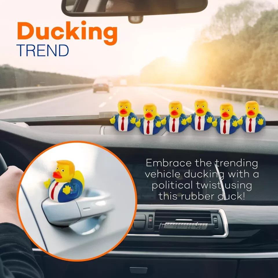 QUACKING FUN - Our 12 Rubber Ducks showcases an iconic hairstyle, suit, and signature gesture, embodying the essence of a well-known personality. It offers a playful and satirical interpretation of a prominent figure that is sure to catch attention. SMALL SIZE - 2.3 inch, The other trump duckies on the market are 3 inch. These fit better on car dashboard and are suitable to hand out. AMUSING DUCKINGS - these small Trump rubber ducks are perfect for the bathtub or placing around the office as amusing desk decor. Made of durable vinyl, they'll provide entertainment time and again without fear of damage. Whether you love or loathe our unique former commander-in-chief, these novelty funny ducks celebrating an iconic American figure are a quirky conversation starter. CONVERSATION STARTER - Whether sparking conversations or enjoying light-hearted moments, this rubber ducks for ducking is bound to create discussions and laughter among friends and family. Share amusing photos of this rubber duck on social media for guaranteed laughs, injecting humor into your online presence effortlessly. DUCKING - Embrace the trending vehicle ducking with a political twist using this rubber duck! Place it on your vehicle's dashboard or affix it to the exterior for a hilarious and attention-grabbing twist QUACKING FUN - Our Rubber Duck showcases an iconic hairstyle, blue suit, red tie, American Flag pin and signature gesture, embodying the essence of a well-known personality. It offers a playful and satirical interpretation of a prominent figure that is sure to catch attention. AMUSING DUCKINGS - Ducks will squeak when you squeeze them. These small Trump rubber ducks are perfect for the bathtub or placing around the office as amusing desk decor. Made of durable vinyl, they'll provide entertainment time and again without fear of damage. Whether you love or loathe our unique former commander-in-chief, these novelty funny ducks celebrating an iconic American figure are a quirky conversation starter. SMALL SIZE - 2.3 inch, The other trump duckies on the market are 3 inch. These fit better on car dashboard and are suitable to hand out. While they're perfect for decorating, these rubber ducks also float in water, making them suitable for bath time fun, Christmas gag gift for friends on Christmas or any occassion.Show Off Your Love For Our 2024 President With The Trump Maga Merchandise! GREAT VALUE - 12 pack Donald trump rubber ducks in bulk. Quack along with the patriotic Trump ducks bulk! They also make hilarious desk toys, car decorations, political event handouts or 4th of july giveaways, party favors. While they're perfect for decorating for usa Trump 2024 elections, these rubber ducks also float in water, making them suitable for bath time fun, gag gift for friends that want to make America great again CONVERSATION STARTER - Whether sparking conversations or enjoying light-hearted moments, These mini trump rubber ducks for ducking is bound to create discussions and laughter among friends and family. Share amusing photos of this Mini trump rubber ducks for jeeps or cruise ships on social media for guaranteed laughs, injecting humor into your online presence effortlessly. DUCKING - Embrace the trend of jeep ducking with a political twist using this rubber duck! Place it on your vehicle's dashboard or affix it to the exterior for a funny and cool stuff for jeeps, Great as a white elephant gifts for men and women that are into trump collectibles and would appreciate these trump gift figurines. Its funny for Trump supporters or haters alike if you'd like to see some liberal tears.
