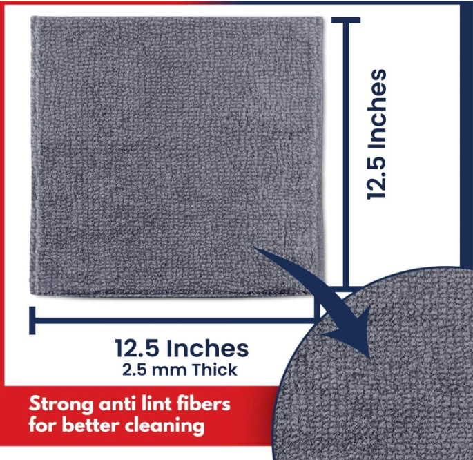 USANOOKS Microfiber Cleaning Cloth Grey - 12 Pcs (12.5"X12.5") - High Performanc