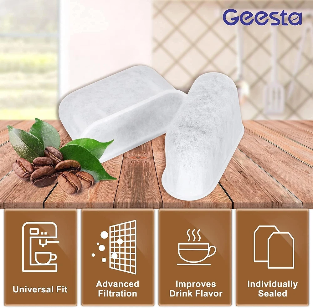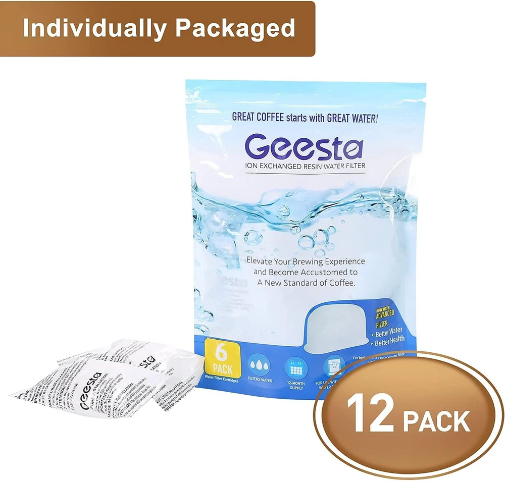 12-Pack Replacement Charcoal Water Filters for 12 Count (Pack of 1), White Product Details Material: Charcoal Product Dimensions: 0.71"D x 1.68"W x 1"H Item Weight: 0.09 Kilograms External Testing Certification: WRAS Product Benefits: Reduces impurities and odors for fresher, better-tasting coffee Brand: Geesta Unit Count: 12.0 Count Number of Items: 1 Manufacturer: Geesta Part Number: Geesta09 Item Weight: 3.2 ounces Item model number: Geesta09 Is Discontinued By Manufacturer: No Size: 12 Count (Pack of 1) Color: White Item Package Quantity: 1 Number Of Pieces: 12 Batteries Included?: No Batteries Required?: No Material: Charcoal Product Dimensions: 0.71"D x 1.68"W x 1"H Item Weight: 0.09 Kilograms External Testing Certification: WRAS Product Benefits: Reduces impurities and odors for fresher, better-tasting coffee ORDER CONTENTS: Set of 12 charcoal water filters help ensure delicious and fresh home-brewed coffee. COMPATIBLE MODELS: Cuisinart Coffee Grind & Brew, Burr Grind & Brew, Single Cup Grind & Brew, Programmable and PerfecTemp coffeemaker series. SMART PACKAGING: Each filter is individually packaged and sealed to ensure brand new quality, and they also come with a Box which can protects the filters for storage. Instruction included. PREMIUM FILTRATION: Geesta charcoal water filters reduce impurities, calcium, chlorine and odors, creating the best-tasting coffee for every coffee lovers. GREAT TASTING COFFEE, TEA AND MORE: Replace the Cuisinart water filter every 2 months or every 60 water tank refills. Replace it more often, if you have hard water in your area.