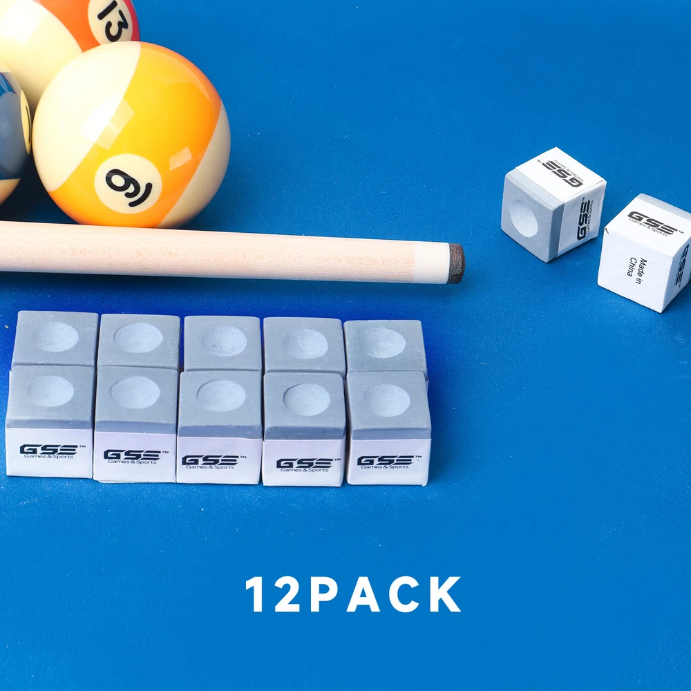 - Superior quality billiard cue chalk delivers a smooth and even coating. - Apply the chalk to the tip of the cue stick to increase the friction between the pool cue tip and the cue ball. - More adhesion allows the chalk to stay on the tip longer. - Great for home game use or tournaments. - Indispensable billiards accessory. - Includes 12 chalk cubes in a box. - 6 colors available. ********************************************************** GSE Games & Sports Expert is the trademark holder of this product. GSE does not authorize any third-party seller to sell this product. Any purchase from a third-party seller will not guarantee the quality and will not qualify for the return policy. GSE is a US-based seller with US customer support and 100% satisfaction guaranteed. Office Hours Please note that our office hours are from 10:00 AM – 4:00 PM Eastern Standard Time, Monday – Friday. We will respond to any questions during business hours. Thank you for visiting our store and we look forward to doing business with you. eBay Return Policy In order to qualify for a return or an exchange, orders must meet the following criteria: 1. Items must be postmarked within 30 days of receipt. 2. All returns must be in original packaging and in new condition. The buyer is responsible for all return shipping costs. Changing your mind or finding an item at a lower price is not a valid reason for return. A 20% handling/restocking fee may be charged. 3. If the item is defective, please contact us within 5 business days of receipt. If the item is returned damaged or used we will charge a 50% restocking fee. 4. Merchandise returned without the original tag and packaging, or damaged may result in a delayed refund or may not qualify for a refund. 5. If the order is shipped to a hotel, casino, or resort, we are not responsible for any loss or damage. 6. International orders are shipped through eBay's Global Shipping Program. Please click the link for more details. https://www.ebay.com/help/buying/postage-delivery/changing-delivery-address-method/international-purchases-postage-buy?id=4057 7. Contact us before giving any negative reviews.