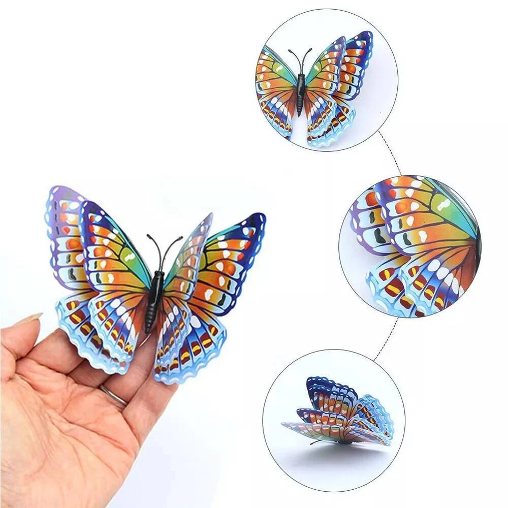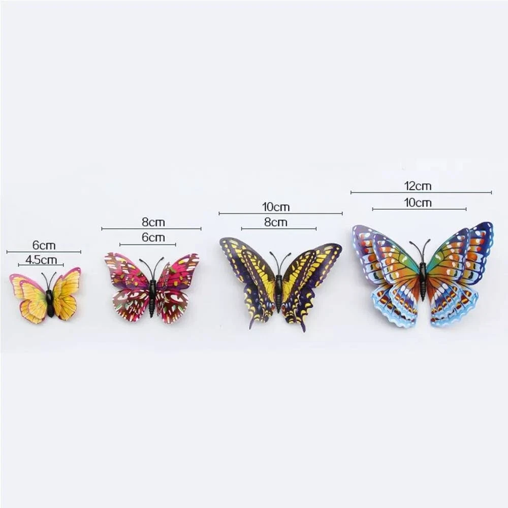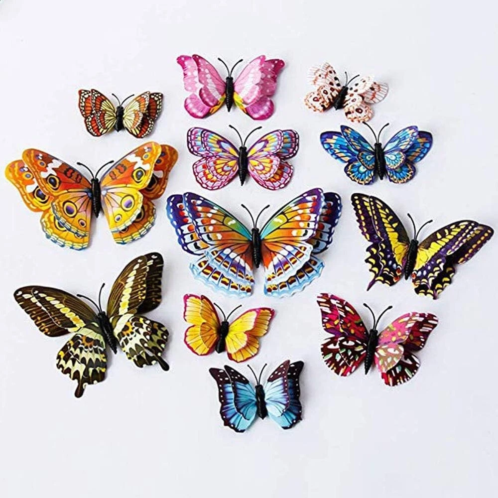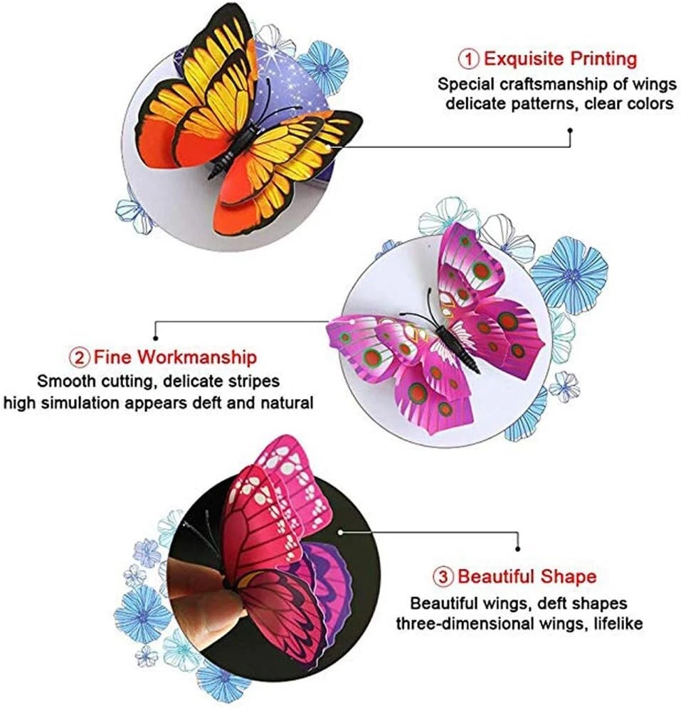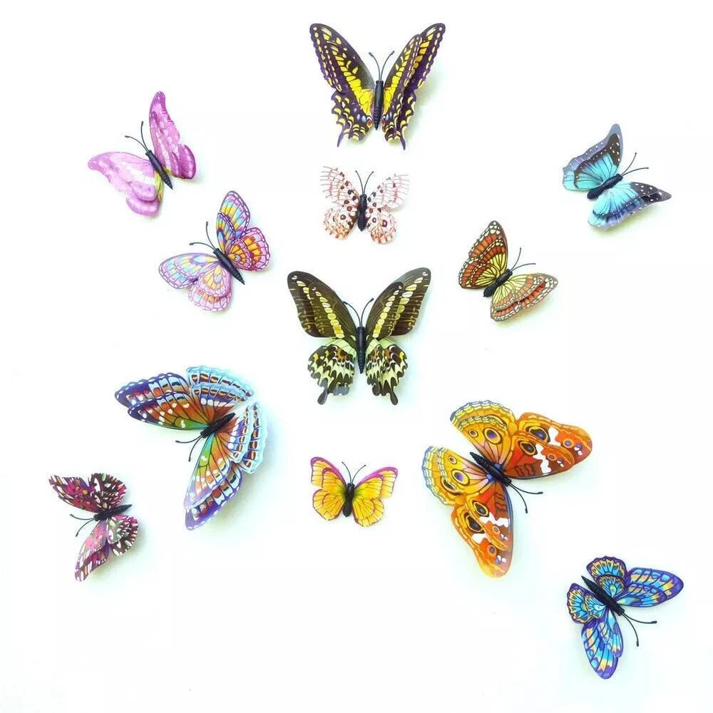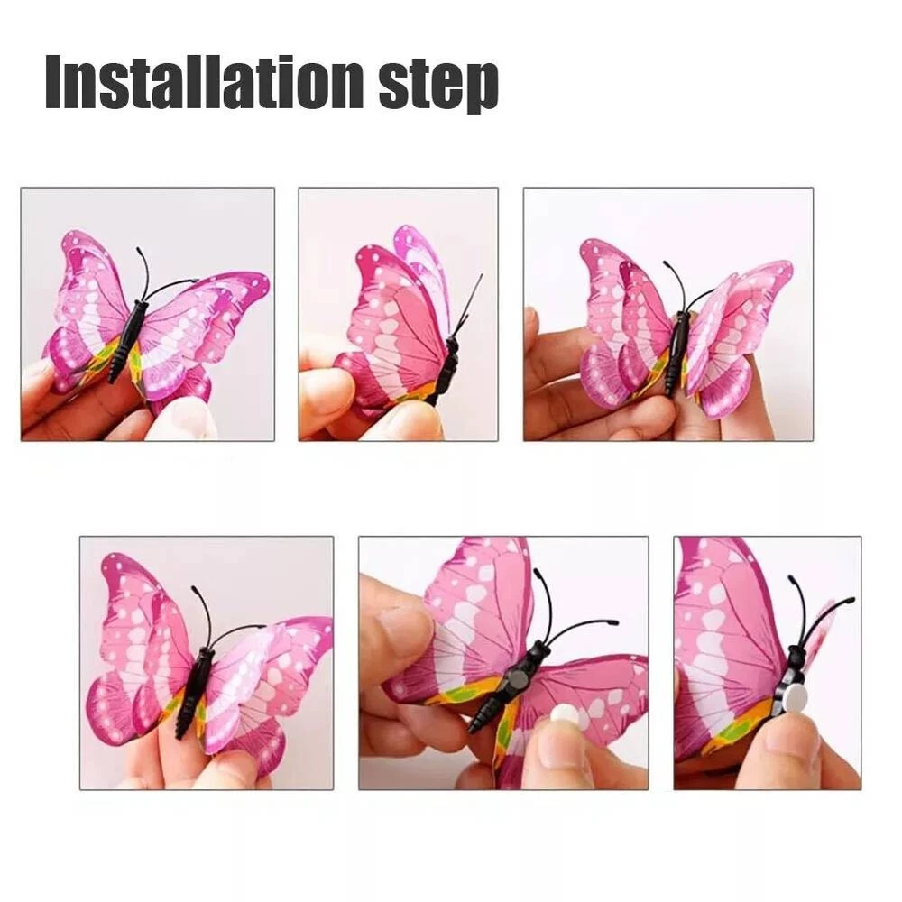 Product Description About this item Package Includes 12 lovely wall stickers in assorted sizes(4.8inches - 2PCS, 3.9inches - 2PCS, 3.2inches - 4PCS, 2.4inches - 4PCS) and comes with 12 pcs balloon glue points. Vivid and colorful 3D butterfly wall decal wings can be folded and they are adjustable, which makes every butterfly vivid like the real one, can glow at night. Butterfly wall decals are made of long-lasting and easy-to-clean PVC. They can be place in gardens, balcony and outdoors for a long time without colour fading. The magnet can be directly attached to the refrigerator or clean the place you want to stick the butterfly, use the balloon glue dots to paste them, and make sure their wings lift up. Our butterfly decorations is perfect in decorative theme parties, children's room, garden party, photography background, wedding, birthday, anniversary etc, making your life more colorful and meaningful with these butterflies wall decals. Various usages: The wall decals are perfect decoration for your kid’s bedroom, living room, hallways, cabinets, TV walls, and glass windows. Great DIY joy: A good way to develop the thinking ability and the practical ability of your children. Create warm atmosphere: These art stickers with stylish pattern add more colour to rooms, and create warm and energetic atmosphere. Removable Butterfly Decor Easy to apply and remove: These wall decals can be easily applied or removed, leaving no residue to protect your walls or refrigerator. Good material: The wall stickers are made of high-quality PVC plastic material, which is waterproof, removable. Specification: Color: Luminous Material: PVC plastic Size: 4.8inches - 2PCS 3.9inches - 2PCS 3.2inches - 4PCS 2.4inches - 4PCS Package Includes: 12 x Butterfly Wall Decals 12 x Balloon Glue Dots The stickers can be applied on all smooth surfaces, such as Walls, Doors,Closets, Plastic, Metal, Tiles, Fridges, Laptops, Cars etc. Please put the butterflies up on the clean wall and press them each for a minute. This model has fluorescent luminous effect. The product has magnets and the butterfly is double-layered, which has a three-dimensional effect. The butterfly is flat when it is convenient to transport and package. After receiving the goods, the wings can be folded and folded to reflect the take-off effect. Equal proportion of double-sided adhesive for easy paste Apply the double-sided tape to the round magnet on the back of the butterfly. Do not peel off the other side of the glue for 1-2 hours, then stick it to the wall, it will not fall easily Can be used multiple times, you just need to buy some double-sided adhesive. Butterfly wall decals - can last a long time, Easy to clean and use again Package content 12 colorful butterfly and got the magnet in the body of butterfly Type:Wall Decal & Wall Sticker Size: 6 -12cm. Pictures: Due to the difference between different monitors, the picture may not reflect the actual color of the item. We guarantee the style is the same as shown in the pictures, but not the same performance on different bodies as on the model. Thank you and happy purchase! Description: Gender:Unisex Type:3D Butterfly Age Range:>1T Color:As the picture Quantity:12 Pattern Type:Butterfly About us We are dedicated to providing premium products and services with the most reasonable prices. with each of its product under rigorous testing to ensure product quality, perfect performance and safety. We believe you will enjoy our products.