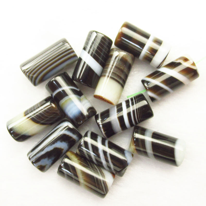 12Pcs Black White Onyx Agate Column Pendant Beads 16x8mm D95984 for Jewelry Making