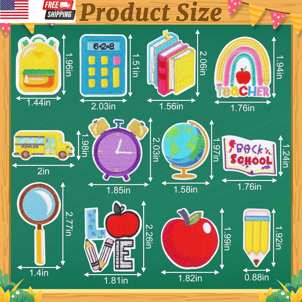 12Pcs Back to School Iron on Patches Pencil Apple School Bus Embroidered Sew Applique Repair Patch Teacher Students DIY Crafts for Clothing Jacket Jeans Dress Backpack Hat Decorations Gift Packaging: Package includes 12pcs back to school iron on patches of random styles, and various sizes can meet the diversified needs of your daily clothes or back to school dress up Back-to-School Theme: The embroidered patch is designed with pencils books, apples, globes, yellow school buses, schoolbags and more, with vivid colors and exquisite craftsmanship, the repair patch can well match the back-to-school atmosphere Exquisite Craftmanship: The sew applique is made of good-quality embroidered cotton material with hot melt adhesive on the back, which is easy to iron or sew. (The plastic on the back is glue, please don't tear off.) Widely Used: These back to school iron on patches are very suitable for DIY clothing repair accessories decoration, which can be applied to dresses, skirts, bags, jeans, hats, shoes, shirts, socks and so on. In addition, the embroidered patch is also suitable for art, craft project, scrapbooks and other DIY decoration or repair damage, and add a joyful atmosphere for back to school celebration Easy to Paste: The back of our repair patch is coated with special glue, which will melt when heated. You can sew or iron sew applique on clothes. Keep the cloth dry and control the preheating temperature when ironing. If you want to keep the back to school iron on patches from falling off, you can sew the back to school iron on patches up Product Description Back to School Iron on Patches 12 pieces back to school iron on patches with different styles, including pencils, books, apples, globes, yellow school buses, schoolbags and more, are vivid in color and exquisite in craftsmanship, and the embroidered patch is suitable for back-to-school days, celebrations, parties or daily decorations, so as to create a unique style and make you charming. Note: The back to school iron on patches are not suitable for water-repellent materials, plastic materials or any hard fabric or shell. Ironing instructions: 1.Keep the back of the back to school iron on patches dry before use (do not tear the plastic). 2. Preheat the iron to the cotton cloth setting. 3. Under this setting, the heatproof performance of the fabric was tested in advance. 4.Place the embroidered patch on the surface of the cloth or curtain, and cover the repair patch with cotton cloth ( must be cotton cloth, not faded cloth). Iron for 20-30 seconds and fix in place. 5.Turn the clothes over and apply pressure on the back of the sew applique for 10-15 seconds with a hot iron (the specific ironing time can be determined according to the situation). 6. If you want to make the back to school on patches stronger, you can sew repair patch along one side of the edge. 7. If you don't have an iron at home, you can sew the embroidered patch directly on the clothes with the same color thread. Item model number 89-6900 Style Back to School Number of Items 12 Mounting Type Sewing, Ironing Color Multicolor Material Cotton Country of Origin China Shape pencils, books, apples, globes, yellow school buses, schoolbags Item Weight 0.704 ounces Theme Back to School Age Range (Description) All Age Groups Number of Pieces 12 Product Dimensions 1.5 x 1.5 x 0.1 inches Shipping Fast shipping is very important for us. Our standard US shipping service is FREE. Your order will be shipped within 2-3 business days upon full payment received. Your order will be delivered within 2-3 business days after the handling time. We only ship to the confirmed PayPal address. We reserve the right to cancel any order for any reason at any time. We are not responsible for undeliverable addresses. Returns and payment We offer a 30 days return policy from checkout winning date. We allow only PayPal as payment method FeedBack Your feedback very important to us, after you get your package and you are satisfied with our service please leave us positive feedback If you have any problem with your order / any questions please before leave any type of feedback For any questions, using eBay contact system Please visit our eBay store to check out other items for sale! Thank you for shopping at our store.