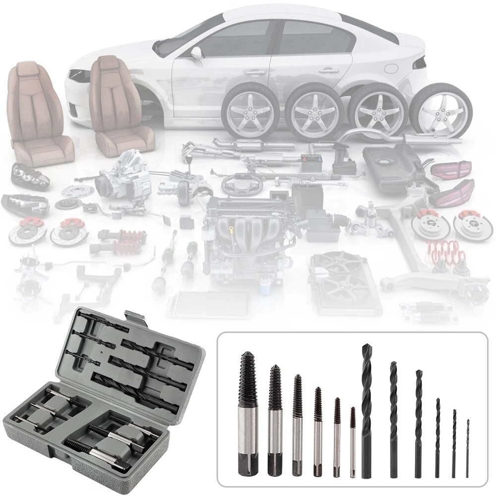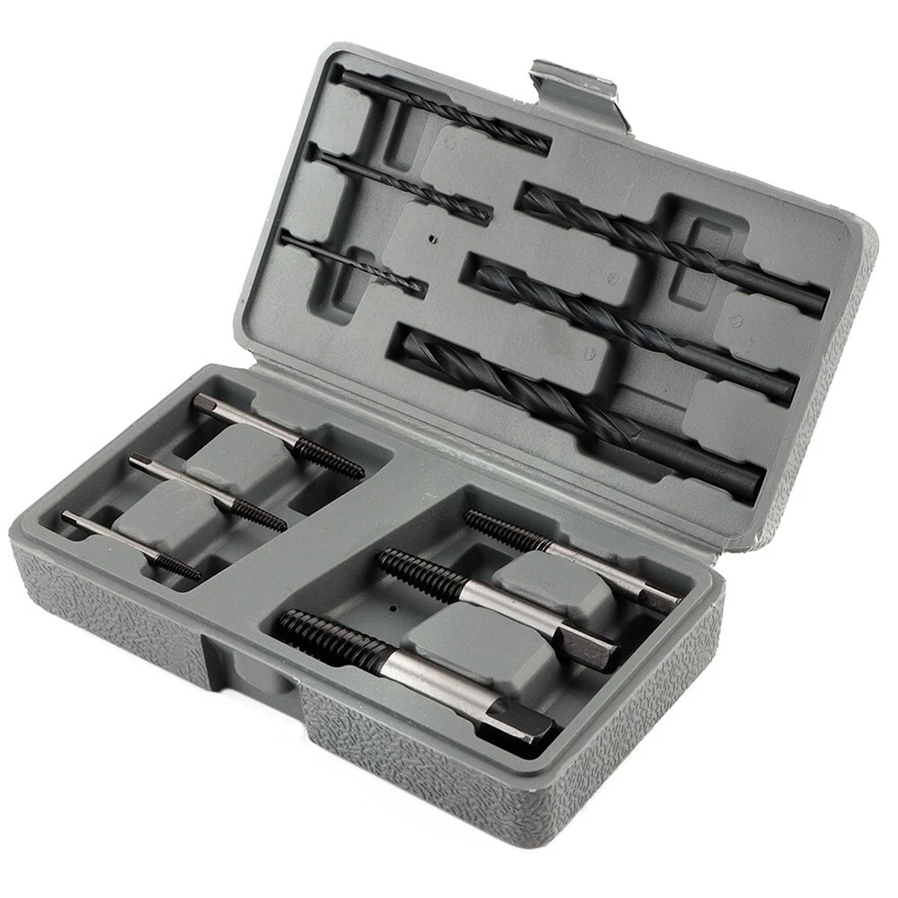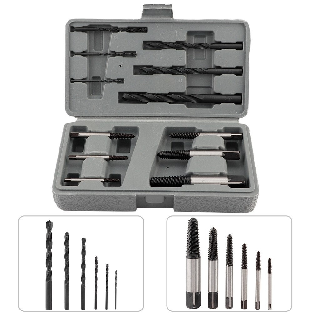 Feature: 1. These extractors will remove most kinds of damaged, rusted, broken or stuck screws from any wood or metal . 2. Made from HSS 4241 and black oxide coated for extra hardness and long durability. Produced from GCr15 bearing steel. 3. 6 pieces heavy duty screw extractor with different sizes to meet multiple needs. 6 pieces high hardness drill bits functions good for drilling. 4. Drill bits can also be used to bore holes on wood, metal, plastic, brick and wall, etc. 5. Easily remove damaged or broken screws, bolts, studs, threaded pipe fittings and so on. Specification: Features: These extractors will remove most kinds of damaged, rusted, broken or stuck screws from any wood or metal . Made from HSS 4241 and black oxide coated for extra hardness and long durability. Produced from GCr15 bearing steel. 6 pieces heavy duty screw extractor with different sizes to meet multiple needs. 6 pieces high hardness drill bits functions good for drilling. Drill bits can also be used to bore holes on wood, metal, plastic, brick and wall, etc. Easily remove damaged or broken screws, bolts, studs, threaded pipe fittings and so on. Specification: Condition: 100% Brand New Material: Secondary Construction, HSS drill bits Type of Thread: Reverse spiral, tapered, coarse thread Color: As Picture Shown Screw Extractor: 3-6, 6-8, 8-11, 11-14, 14-18 and 18-25 Drills: 3/32, 1/8, 3/16, 1/4, 5/16, 3/8inch Package list: 6 * Screw Extractors 6 * Drills Bits 1 * Plastic Case