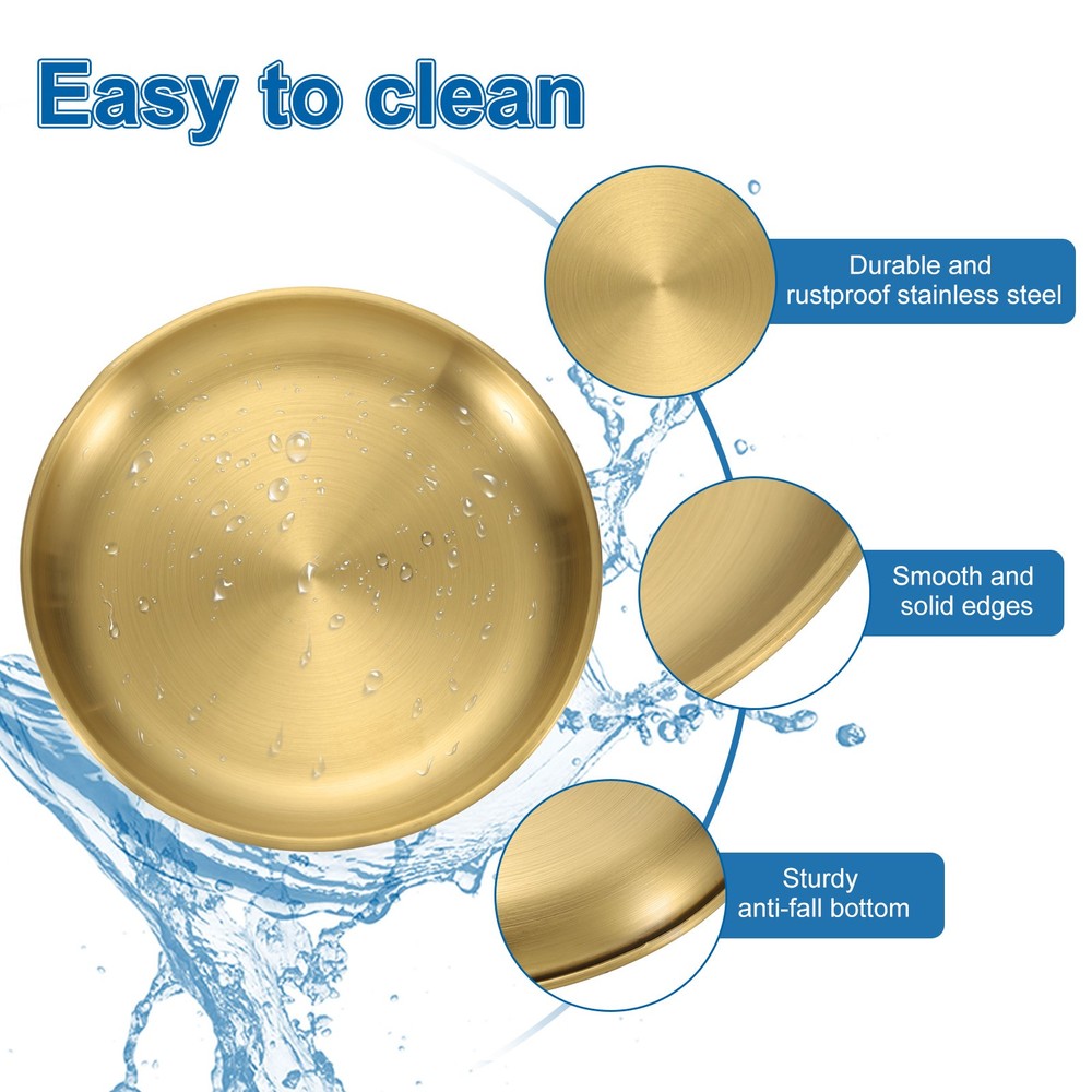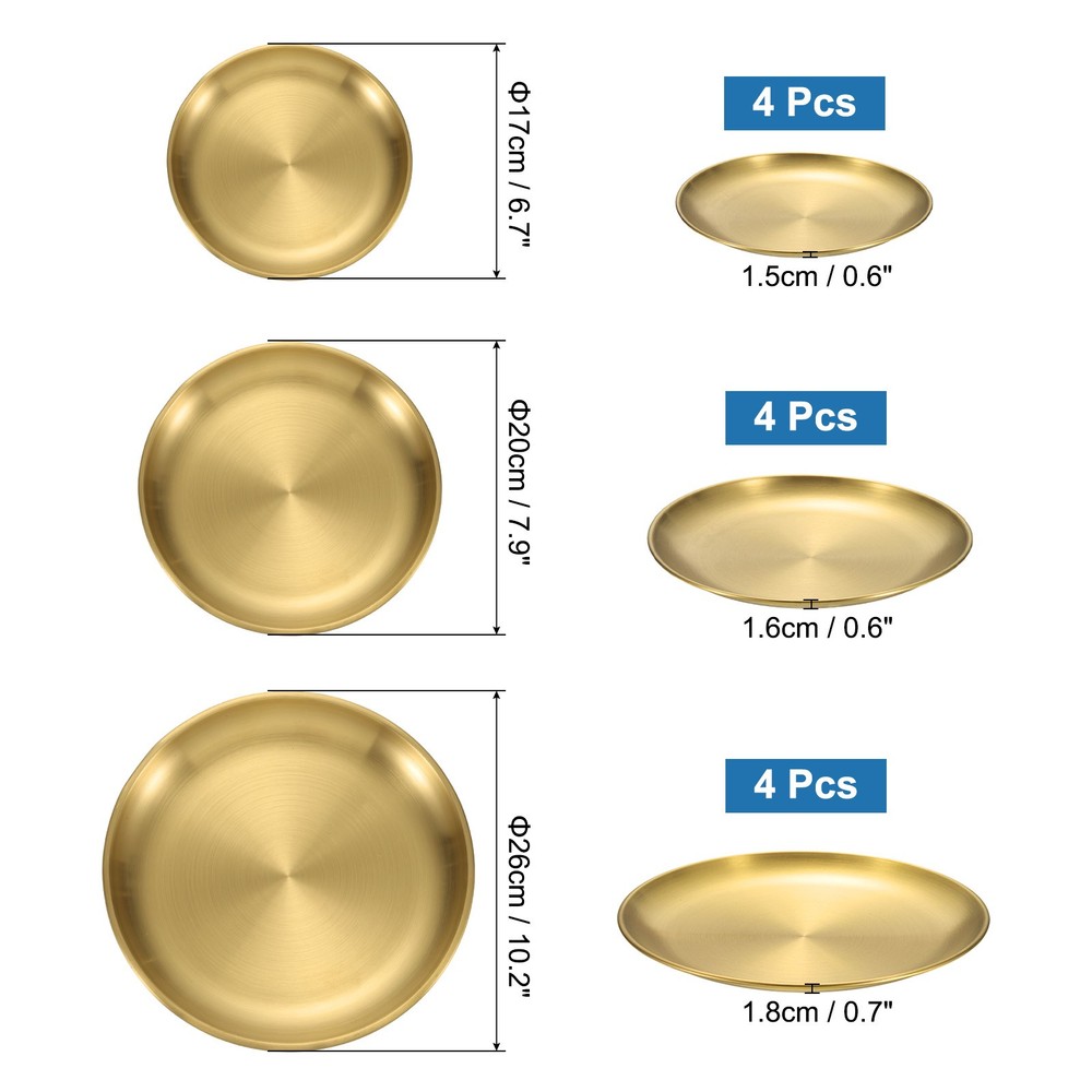 Document Suitable Size:You get a set of 12 gold stainless steel round plates with 3 size, which is perfect for family restaurants to serve dinner or lunch, such as steak, salad, pizza, barbecue, fried rice, pasta, etc. It can also be used as a fruit plate and snack dessert plate after the meal.Durable Material:Our metal plates are made of good-quality stainless steel, with a smooth metal surface without rough spots and round edges to protect your hands. It has excellent rust resistance, is not easy to bend and crack, will not fade, and can be used for a long time.Easy to Maintain:1. Our stainless steel material is better than fragile glass, ceramic or plastic, so you don’t have to worry about the plates breaking when they fall.2. Easy to clean, dishwasher-safe, making cleanup a breeze.3. Can be easily stacked and stored, saving space in the kitchen cabinet.Stylish and Reusable:Use these durable and elegant plates instead of disposable dinner plates, which can be used over and over again, reducing waste and good for our green earth.In addition to beautiful photo opportunities, you can also gain beauty in your heart.Versatile Use:Great for indoor and outdoor use, family gatherings, dinners, lunches; outdoor camping, poolside entertainment, picnics, and travel; restaurants use them in large quantities for dinners and other occasions, our stainless steel dinner plates are very suitable and can meet all your dining needs. 12Pcs Stainless Steel Dinner Plates, 3 Size Round Serving Plate Dishes, Gold Suitable Size: You get a set of 12 gold stainless steel round plates with 3 size, which is perfect for family restaurants to serve dinner or lunch, such as steak, salad, pizza, barbecue, fried rice, pasta, etc. It can also be used as a fruit plate and snack dessert plate after the meal. Durable Material: Our metal plates are made of good-quality stainless steel, with a smooth metal surface without rough spots and round edges to protect your hands. It has excellent rust resistance, is not easy to bend and crack, will not fade, and can be used for a long time. Easy to Maintain: 1. Our stainless steel material is better than fragile glass, ceramic or plastic, so you don’t have to worry about the plates breaking when they fall. 2. Easy to clean, dishwasher-safe, making cleanup a breeze. 3. Can be easily stacked and stored, saving space in the kitchen cabinet. Stylish and Reusable: Use these durable and elegant plates instead of disposable dinner plates, which can be used over and over again, reducing waste and good for our green earth. In addition to beautiful photo opportunities, you can also gain beauty in your heart. Versatile Use: Great for indoor and outdoor use, family gatherings, dinners, lunches; outdoor camping, poolside entertainment, picnics, and travel; restaurants use them in large quantities for dinners and other occasions, our stainless steel dinner plates are very suitable and can meet all your dining needs. Hot Item Payment 1.We accept eBay payment . 2.Payment must be received within 7 business days of auction closing. Shipping 1.We ship to your eBay or Paypal address. Please make sure your eBay and Paypal address is correct before you pay. 2.Items will be shipped within 1-3 business day when we received payment. 3.Delivery time depends on destination and other factors. Description Policy 12Pcs Stainless Steel Dinner Plates, 3 Size Round Serving Plate Dishes, Gold Suitable Size: You get a set of 12 gold stainless steel round plates with 3 size, which is perfect for family restaurants to serve dinner or lunch, such as steak, salad, pizza, barbecue, fried rice, pasta, etc. It can also be used as a fruit plate and snack dessert plate after the meal. Durable Material: Our metal plates are made of good-quality stainless steel, with a smooth metal surface without rough spots and round edges to protect your hands. It has excellent rust resistance, is not easy to bend and crack, will not fade, and can be used for a long time. Easy to Maintain: 1. Our stainless steel material is better than fragile glass, ceramic or plastic, so you don’t have to worry about the plates breaking when they fall. 2. Easy to clean, dishwasher-safe, making cleanup a breeze. 3. Can be easily stacked and stored, saving space in the kitchen cabinet. Stylish and Reusable: Use these durable and elegant plates instead of disposable dinner plates, which can be used over and over again, reducing waste and good for our green earth. In addition to beautiful photo opportunities, you can also gain beauty in your heart. Versatile Use: Great for indoor and outdoor use, family gatherings, dinners, lunches; outdoor camping, poolside entertainment, picnics, and travel; restaurants use them in large quantities for dinners and other occasions, our stainless steel dinner plates are very suitable and can meet all your dining needs. Hot Item Payment 1.We accept eBay payment . 2.Payment must be received within 7 business days of auction closing. Shipping 1.We ship to your eBay or Paypal address. Please make sure your eBay and Paypal address is correct before you pay. 2.Items will be shipped within 1-3 business day when we received payment. 3.Delivery time depends on destination and other factors.