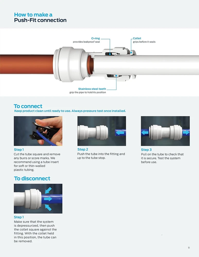 Store New Arrivals Add to Favorite View Feedback Contact 12Pcs White Plastic Union Connector (1/4-In OD X 1/4-In OD, Push-To-Connect Description Thread Size 0.25 inch Style Push-to-Connect Coupling Fitting Size 1/4-in OD x 1/4-in OD Thread Type NPT Color Copper,White Brand EZRODI Material Plastic Country of Origin China Connector Type Union Item Weight 0.05 Kilograms Batteries Included? No Batteries Required? No Number of Pieces 12 Exterior Finish White Package Dimensions 3.35 x 2.44 x 1.26 inches Manufacturer EZRODI Durability- Non-toxic durable POM construction with NBR O-Ring offers high corrosion-resistance Purpose-Useful for joining 2 pipes for an ample reach. Makes installations quick and easy. Technology-Connect, disconnect and reconnect in seconds without tools, solder, unions or glue needed for assembly;Instant push-fit connection and leak tight seal,No scale build up improves performance and equipment lifespan,Superior flow characteristics,Oval collet makes disassembly easy Application-Food Quality,These fittings have been developed for the residential filtered water market but are also suitable for other potable liquids. Possible Applications include: water filtration, reverse osmosis systems, ice makers, home/office coffee and beverage dispensing equipment, hydroponics and aquarium/aquatics, air, gases, vacuum and liquids Compatibility-Suitable for use with soft plastic tubing LLDPE, PEX, Polyethylene,nylon or soft copper OD Sized pipe/tubing Quick-connect fittings are the fastest way to join multiple materials without the need for additional tools, solder, unions or glue. Compatible with PEX, polyethylene, nylon, or soft copper in any combination. These plastic push-to-connect fittings are easy to use and shorten install time. Push-to-Connect Union is manufactured from white POM (Polyethylene) and equipped with food grade NBR O-rings utilizing push-fit technology to make an easy, reliable, leak-free connection. Developed to satisfy a wide range of applications it can be used on plastic or soft copper tubing. They are also ideal for use in Agricultural Spraying, Farm/Dairy Equipment,Car Wash and a variety of other applications. EASY INSTALLATION-To install, insert the tube into the fitting and the stainless steel teeth bite down and grip tight, while a specially formulated O-ring compresses to create a perfect seal. Disassembly is just as fast by pushing down on the collar with two fingers and pulling the tubing outward allowing the fittings and valves to be easily changed and reused. "push connect water fittings Working pressure and temperature: Max. 150 psi at 70° F Max. 60 psi at 140° F " ABOUT US We offer the best prices around on high quality products. Our E-store includes media such as books, movies, music and games while offering electronics, toys, sporting apparel, clothing, tools, general home, garden items and more. SHIPPING We are always working hard to ensure your package arrives as soon as possible. Please understand that some factors like weather, high postal traffic, and the performance of shipping companies are outside of our control. We offer free shipping to the lower 48 states and ship within 2 business days of payment, usually sooner. We do not accept P.O. Boxes. Please provide a physical address. RETURNS We offer a 30-Day Return Policy on items which you are not completely satisfied with. You have the option for a full-refund or an exchange of the item. No returns are available on items shipped outside of the USA. PAYMENT We accept PayPal. CONTACT US This page content is yet to come Please ad us to your favorite seller and visit again later Thank You CUSTOMER SATISFACTION We try our very best to make sure every customer is completely satisfied. If there's a problem, message us! We're happy to help.