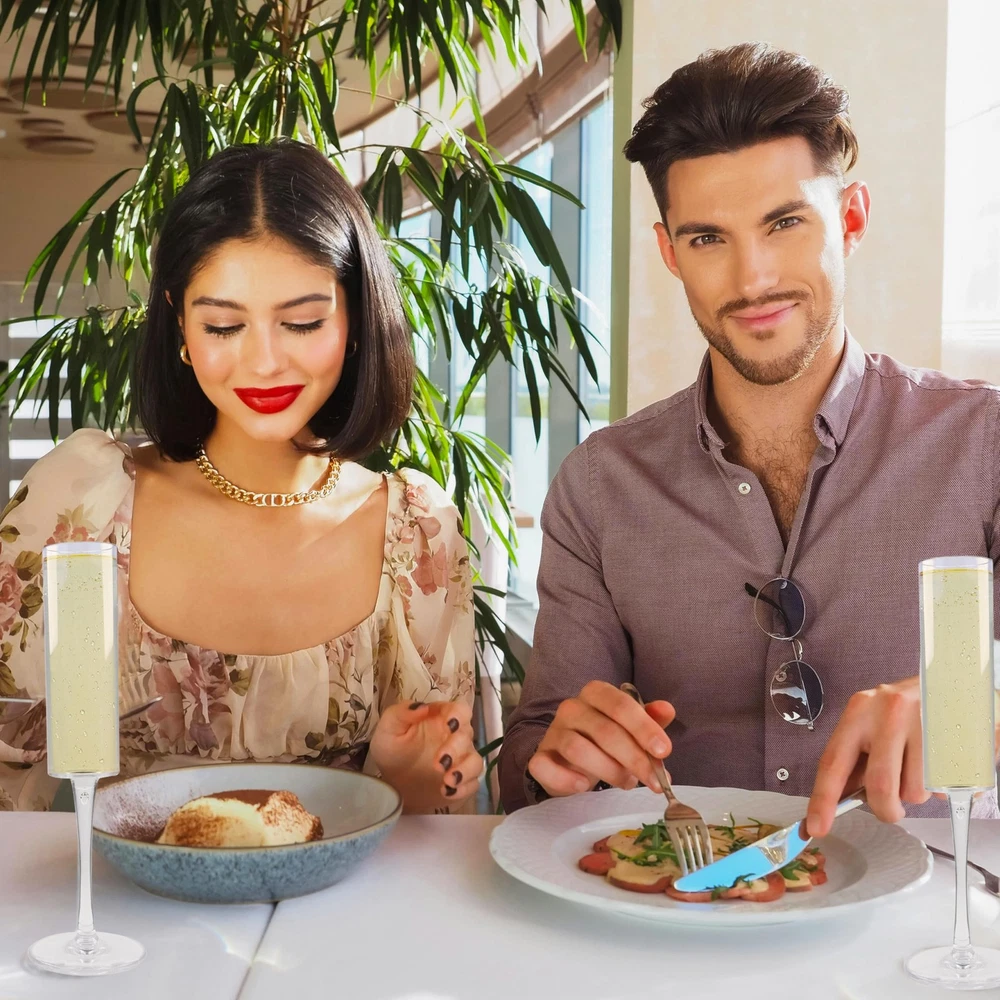 These elegant champagne flutes are perfect for parties! Made of sturdy, shatterproof plastic, they look just like real glass but won’t break if dropped. The tall, clear design adds a classy touch, and the 6oz size is just right for toasts. Great for weddings, birthdays, or any celebration—easy to clean and reusable, though not dishwasher-safe. Love the set of 12, so there’s plenty for guests!