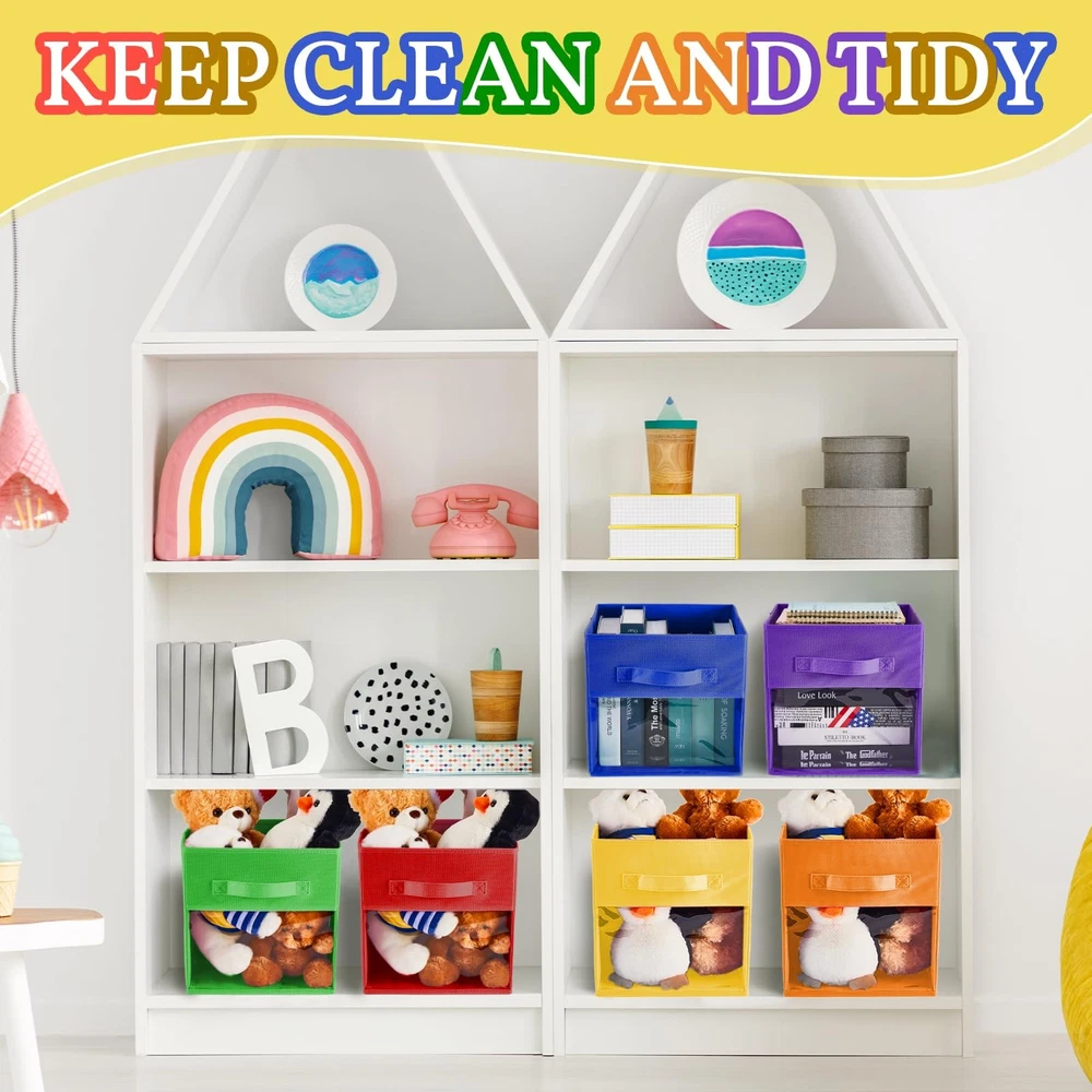 Features: The cloth storage bins for organizing are equipped with the handle, not easy to tear apart, so you can easily pull out cube storage bins from high places for taking out or storing items. The toy storage bins are designed in simple and elegant colors, which can fit well with your home style, also can be applied as decoration to decorate your home. Specifications: Material: non woven fabric Color: as pictures shown Size: approx. 11 x 11 x 11 inches/ 28 x 28 x 28 cm Package includes: 12 x Fabric storage cubes Notes: Manual measurement, please allow slight errors on size. The color may exist a slight difference due to different screen displays. Sufficient Quantity: you will receive 12 pieces of clear cube storage bins, measure about 11 x 11 x 11 inches/ 28 x 28 x 28 cm, large, sufficient and versatile, enough to meet your daily use and replacement needs, you can also share some with your friend and family members Clear Window Design: our decorative storage bins adopt a transparent window design on the front of the bins, which allows you clearly see the items inside so that you can find items quickly and accurately; And there is a handle on the top of the plastic window, easy for you to pull it out, will bring you more convenience Trustworthy and Breathable: the clear baskets for organizing are mainly made of quality non woven fabric, safe and breathable, they can properly store your clothes, toys and books, and have no bad smells, sturdy and strong, can meet your long term storage needs Foldable and Detachable: the fabric storage cubes can be folded apartment to keep compact when not in use, just need to remove the bottom board, the assembly will be finished within a few seconds, which helps you save much time and space, they are good helpers for your home Wide Applications: the cube storage is a great storage way for clothes, bedding, towels, plush toys, books, crafts, office supplies and other sundries, allowing your closets, cabinets, shelves, bedrooms, living rooms, playrooms and more places to become more clean and tidy