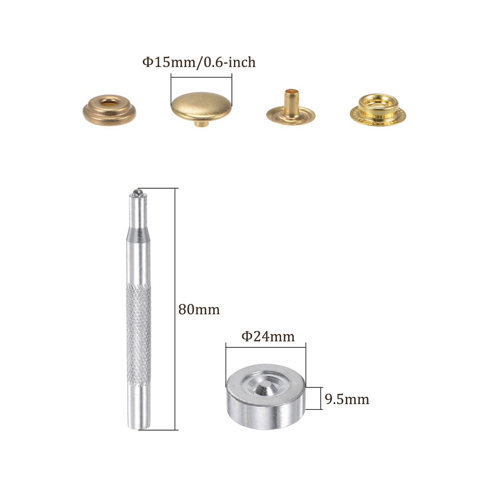 Document APPLICATION:This snap fastener kit is suitable for various DIY clothing decoration projects. It can be used on clothing, leather items, boat covers, children's clothes, clothes, backpacks, bags, hats, jackets, and more.FEATURES:The snap button tool comes with non-slip designed installation tools, making it easy to install the snaps by yourself. The 4-part clasp design ensures that the snap fasteners stay securely in place and do not easily come off.SPECIFICATION:Size: 15mm CapPackage: 12 sets of snap buttonTIPS:If you are new to using snaps, it is recommended to first try them on old fabric or practice before applying them to your desired project. 12 Sets Snap Fasteners Kit Metal with Tool Golden APPLICATION: This snap fastener kit is suitable for various DIY clothing decoration projects. It can be used on clothing, leather items, boat covers, children's clothes, clothes, backpacks, bags, hats, jackets, and more. FEATURES: The snap button tool comes with non-slip designed installation tools, making it easy to install the snaps by yourself. The 4-part clasp design ensures that the snap fasteners stay securely in place and do not easily come off. SPECIFICATION: Size: 15mm Cap Package: 12 sets of snap button TIPS: If you are new to using snaps, it is recommended to first try them on old fabric or practice before applying them to your desired project. Hot Item Payment 1.We accept eBay payment . 2.Payment must be received within 7 business days of auction closing. Shipping 1.We ship to your eBay or Paypal address. Please make sure your eBay and Paypal address is correct before you pay. 2.Items will be shipped within 1-3 business day when we received payment. 3.Delivery time depends on destination and other factors. Description Policy 12 Sets Snap Fasteners Kit Metal with Tool Golden APPLICATION: This snap fastener kit is suitable for various DIY clothing decoration projects. It can be used on clothing, leather items, boat covers, children's clothes, clothes, backpacks, bags, hats, jackets, and more. FEATURES: The snap button tool comes with non-slip designed installation tools, making it easy to install the snaps by yourself. The 4-part clasp design ensures that the snap fasteners stay securely in place and do not easily come off. SPECIFICATION: Size: 15mm Cap Package: 12 sets of snap button TIPS: If you are new to using snaps, it is recommended to first try them on old fabric or practice before applying them to your desired project. Hot Item Payment 1.We accept eBay payment . 2.Payment must be received within 7 business days of auction closing. Shipping 1.We ship to your eBay or Paypal address. Please make sure your eBay and Paypal address is correct before you pay. 2.Items will be shipped within 1-3 business day when we received payment. 3.Delivery time depends on destination and other factors.