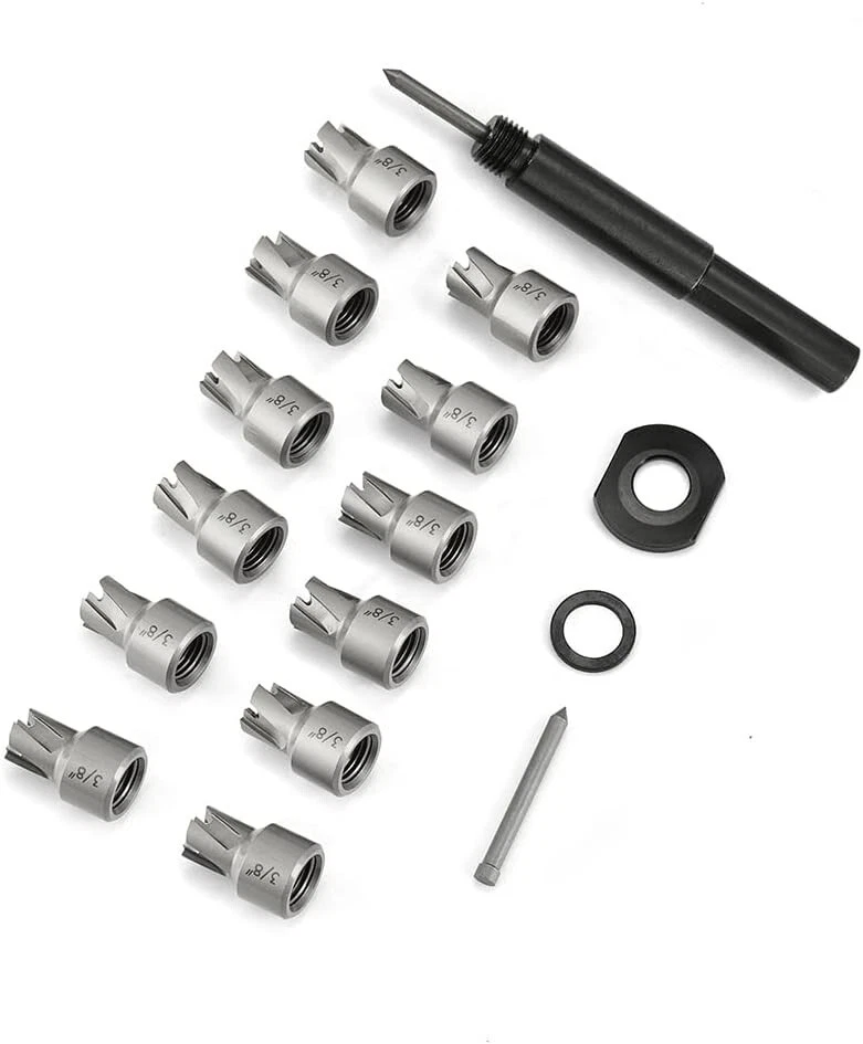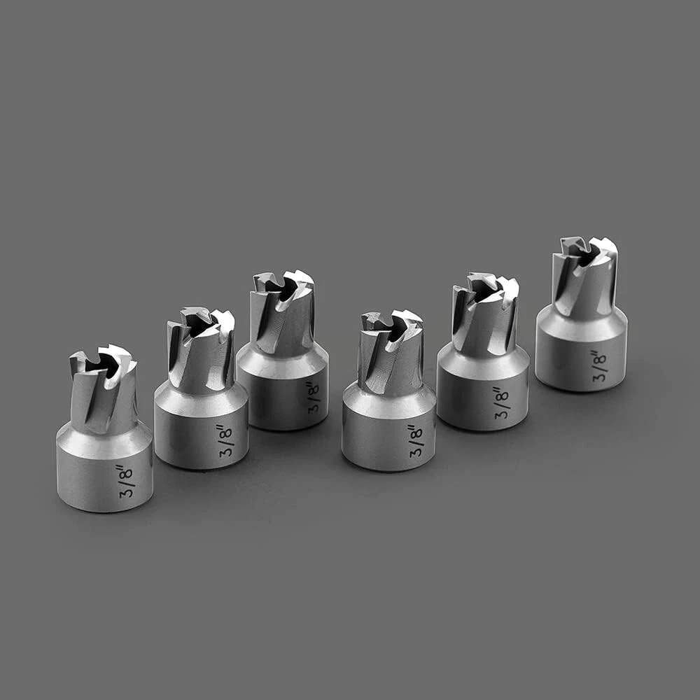 Spot Weld Cutter Set 12-pack 3/8 Inch Cutting Diameter HSS Remover Welding Metal Sheet Hole Drilling Bits for Power Hand Drill Tool INCLUDES 12-pack spot weld cutter 3/8 inch heavy duty cutting blades with 3/8" thread shank for a long-term usage. WIDELY USAGE Suitable for spotwelding on most vehicle auto body panels,and thin stainless steel sheets, iron sheets, aluminum sheets,iron,cast iron,alloy steel,carbon steel or other thin metal sheets. 3/8 INCH Fits for 3/8" handheld drill chucks or larger size and the spring loaded needle helps guide the cutting blades. CONVENIENCE:Easy to handle with and replace,fast and quickly separates spot-welded panels without distortion. HIGH QUALITY MATERIAL Made of high-speed steel material, high hardness and heat resistant. Spot weld cutter 12-pack 3/8 inch cutting blades(annular cutters),suitable for thin stainless steel sheets, iron sheets, aluminum sheets,iron, cast iron, alloy steel, or other thin metal sheets,and fits for 3/8''handheld drill chucks or larger size and the spring loaded needle helps guide the cutting blades.