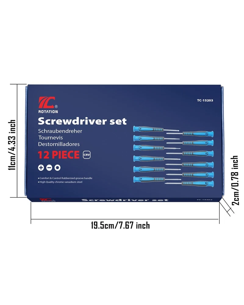 This precision screwdriver set is a must-have for any DIY enthusiast or tech repair job! The magnetic tips grip screws securely, making tiny tasks so much easier. The rubberized handle provides excellent grip and comfort, even during long repair sessions. With 12 different sizes of Phillips, slotted, and Torx bits, it covers almost every small screw you’ll encounter. The compact size fits perfectly in a toolbox or drawer, and the included paper box keeps everything organized. Great quality for the price—highly recommend for anyone working with electronics, glasses, or small appliances!
