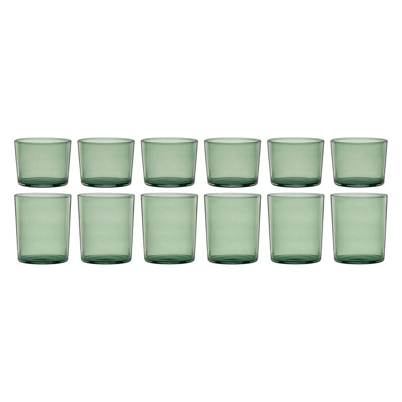 Brand: Unbranded Type: Glassware Set Features: Stackable Model: Does not apply gtin13: Does not apply Item Height: 4.00 in UPC: Does not apply Set Includes: (6) 16oz tall glasses, (6) 10oz short glasses MPN: Does not apply Item Width: 3.50 in Item Weight: 16 oz Material: Durable glass Color: Green
