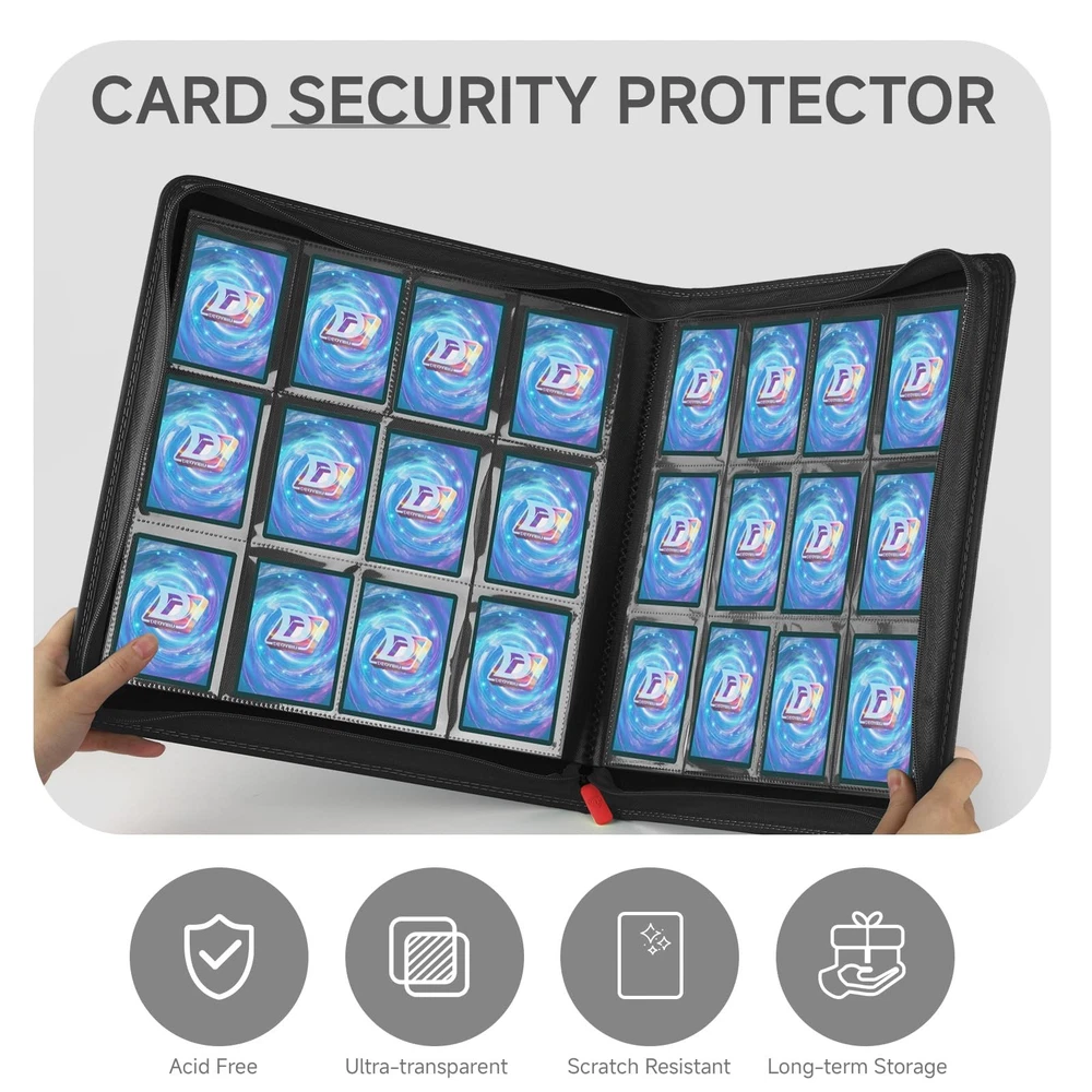 900-Pocket Trading Card Binder with PU Cover & Zip Closure for Secure Display