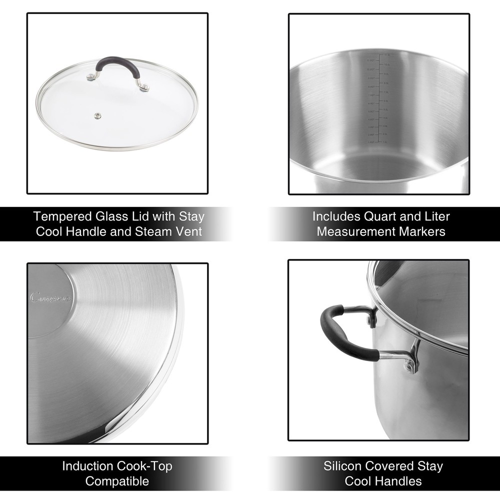 You may also like Extra Strength B12 Fast Dissolve Tablets Metabolism Support 5000 mcg 45 Count US 8.75 USD 9.21 USD Free shipping 5% off Evening Primrose Oil 1000mg Women's Health Supplement 75 Softgels GLA Balance US 10.13 USD 10.66 USD Free shipping 5% off Purina Wet Cat Food Appetizers Chicken Shredded Beef Grain Free Broth 5 Pack New 9.42 USD 9.92 USD Free shipping 5% off Kitchen Small 1QT Ice Cream Maker for Sorbet, Gelato, and Frozen Yogurt, Summer 28.24 USD 29.73 USD Free shipping 5% off Vitamin C Gummies Immune Support Vegetarian Non-GMO Orange Flavor 250mg 70 Count 8.75 USD 9.21 USD Free shipping 5% off Square Porcelain Salad Plates Set of 12 Dishwasher Microwave Oven Safe New 28.01 USD 29.48 USD Free shipping 5% off Turmeric Curcumin Ginger Capsules 90 Count Vegetarian Non-GMO Herbal Supplement 8.75 USD 9.21 USD Free shipping 5% off Adjustable T-Leg Ironing Board W/ Cotton Cover & Pad Durable Steel Frame New 32.33 USD 34.03 USD Free shipping 5% off (6 pack) 4-Part Carbonless Coaches Baseball/Softball Lineup Cards (17LU) 38.98 USD 41.03 USD Free shipping 5% off Rapid Release Magnesium Citrate 100mg Capsules Bone Health Supplement 100 Count 11.24 USD 11.83 USD Free shipping 5% off Vitamin C Gummies Immune Support Antioxidant Vegetarian 1000mg 60 Count Orange 14.54 USD 15.31 USD Free shipping 5% off Collapsible Laundry Hamper Durable Storage Tote Easy Carry Handles Portable New 23.91 USD 25.17 USD Free shipping 5% off Cook up your favorite soups, stews, stocks, sauces, and other tasty dishes in this Large Stainless-Steel Stock Pot by Classic Cuisine. This 12-quart stock pot has a scratch-resistant finish and includes a tempered glass lid with a vent hole to help release any built-up steam during cooking. Conveniently, this durable cooking pot has both liter and quart measurements on the inside to let home chefs know how much liquid to add. For added safety, the stew pot has stay-cool handles on the lid and both sides and is designed for use on gas, electric, glass, or induction-style cooktop stoves. 12-QUART STOCK POT WITH LID - Made from durable stainless-steel, this cooking pot features a scratch-resistant finish and a tempered glass lid with a vent hole to release steam. MEASUREMENTS IN POT - Conveniently, this large soup pot includes both liter and quart measurements on the interior to let home chefs know how much cooking liquid to add. COOKTOP COMPATIBLE - This stainless-steel stock pot is designed for safely cooking your favorite dishes on gas, electric, glass, or induction-style cooktop stoves. STAY COOL HANDLES - Silicone-coated handles on the lid and both sides of this steel pot stay cool to the touch, no matter how boiling hot its contents become. MATERIALS - Stainless-Steel, Tempered Glass, and Silicone. DIMENSIONS - (L) 16" x (W) 11. 5" x (H) 7. 75". COLOR - Stainless-Steel. Deerfield Paper Hot Cups Leak Resistant 8oz 50 Cups Sleeve Catering Events New 43.93 USD 46.24 USD Free shipping 5% off Garage FastTrack Rail Multi-Purpose Hook Set 2-Pack Heavy-Duty Storage Solution 24.92 USD 26.23 USD Free shipping 5% off Puppy Dry Dog Food Chicken Brown Rice Recipe Whole Health Blend 6lb Kibble New 16.55 USD 17.42 USD Free shipping 5% off Mini Ceramic Table Lamp Oval Shape Fabric Shade Candelabra Bulb Home Decor New 17.3 USD 18.21 USD Free shipping 5% off Reversible Fleece Dog Bed Machine Washable Crate Mat Comfort Cushion Pets New 14.56 USD 15.33 USD Free shipping 5% off 4 Piece Microfiber Bed Sheet Set Deep Pocket Hypoallergenic Soft Durable Bedding 33.12 USD 34.86 USD Free shipping 5% off Heavy Duty T-Hinge 70lb Steel Zinc Tight Pin 8 Mounting Holes Durable Hinge New 8.95 USD 9.42 USD Free shipping 5% off Black Wood Serving Board Charcuterie Platter Kitchen Decor Easy Clean Durable US 21.91 USD 23.06 USD Free shipping 5% off Ceramic Rectangular Platter Serving Meats Veggies Floral Design Dishwasher Safe 26.98 USD 28.4 USD Free shipping 5% off Half-Size Steam Table Pans 8 Pack Stainless Steel Anti-Jam Durable Cookware New 91.43 USD 96.24 USD Free shipping 5% off Non Slip Velvet Hangers 50 Pack Heavy Duty Flocked Thin Suit Clothes Hangers New 27.3 USD 28.74 USD Free shipping 5% off Waterproof Eco-Friendly 30% Recycled PEVA Shower Curtain Set W/ Hooks 13-Piece 14.68 USD 15.45 USD Free shipping 5% off
