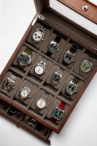 Return Policy Fast Delivery Trusted seller 12 Slot Leather Watch Box Organizer for Men - Display Case with Valet Drawer - Ideal for Large Wrist Watches and Jewelry Product Description 100% Velvet ⌚ THE BEST LEATHER WATCH BOX: this watch case and mens jewelry box is made of wood and covered with very high quality pu leather of a beautiful brown color. It is made by hand with special care on the finishes. ⌚ LUXURY WATCH CASE: The interior has 12 watch slots and it is made of very soft grey velvet, specially thought to store your timepieces with the best care possible. In the bottom part it has a valet drawer with a perfectly soft movement with four compartments so you can keep more watches or other mens jewelry. It has two stainless steel spheric handles with a beautiful finish. ⌚ PERFECT FOR WATCH LOVERS AND WATCH COLLECTORS: manufactured with very high quality standards to provide the care and exclusivity that your watches deserve ⌚ HIGH QUALITY WARRANTY: This product is fully d against any imperfection or malfunction. If t is any issue with this product please contact us and we will solve it or refund your money. ? SPECIAL GIFT FOR THAT PERSON YOU MOST CARE ABOUT: this watch holder for men is the best gift for someone special like your father, brother, husband, friend or boss. It comes in a beautiful chocolate brown hard box that will provide a delightful unboxing experience. Show your true appreciation for that special person with this high quality luxury watch box. Shipping Returns Payment Shipping Shipping is FREE to all addresses other than APO/PO boxes in the lower 48 states. All our stock ships from US-based warehouses. Shipped via USPS or UPS (depending on location and package weight) Unless stated otherwise, all orders will ship within 24-72 hours of your payment being processed. Check our feedback to see the great reviews of FAST shipping we offer. Returns Seller does not accept returns Payment We currently accept payment via eBay managed payments only. Once payment is cleared, we will dispatch your shipment within 1-3 business days. Please refer to the "Shipping" tab for more information regarding shipping speed to your destination.