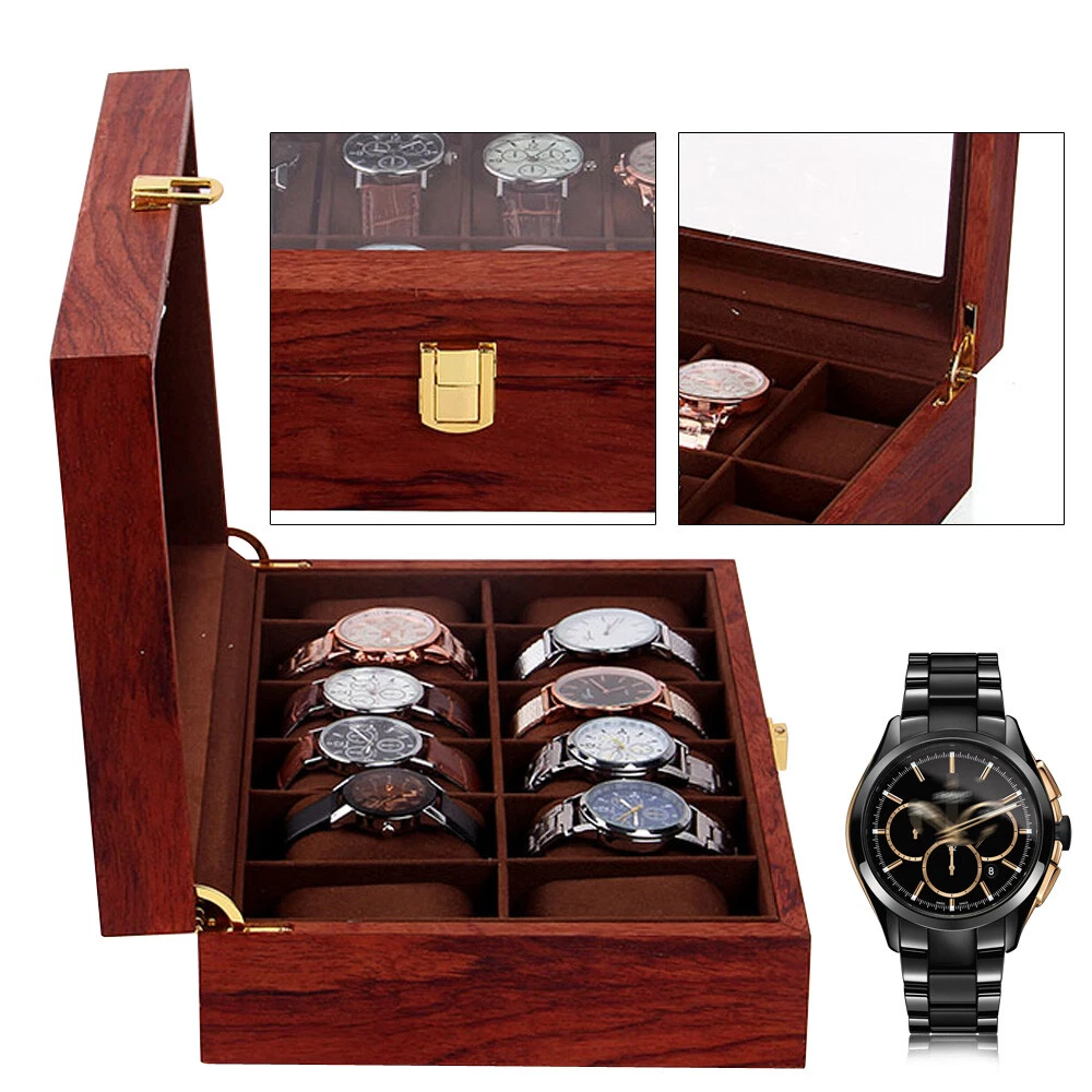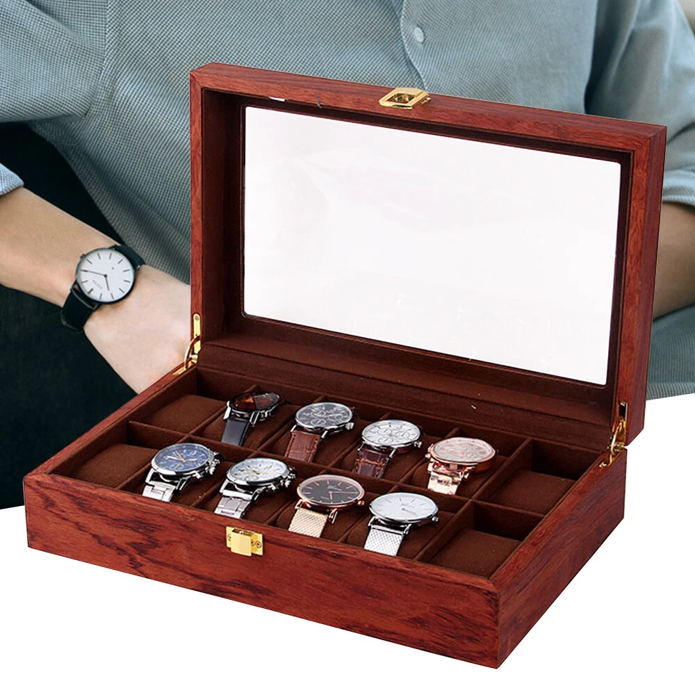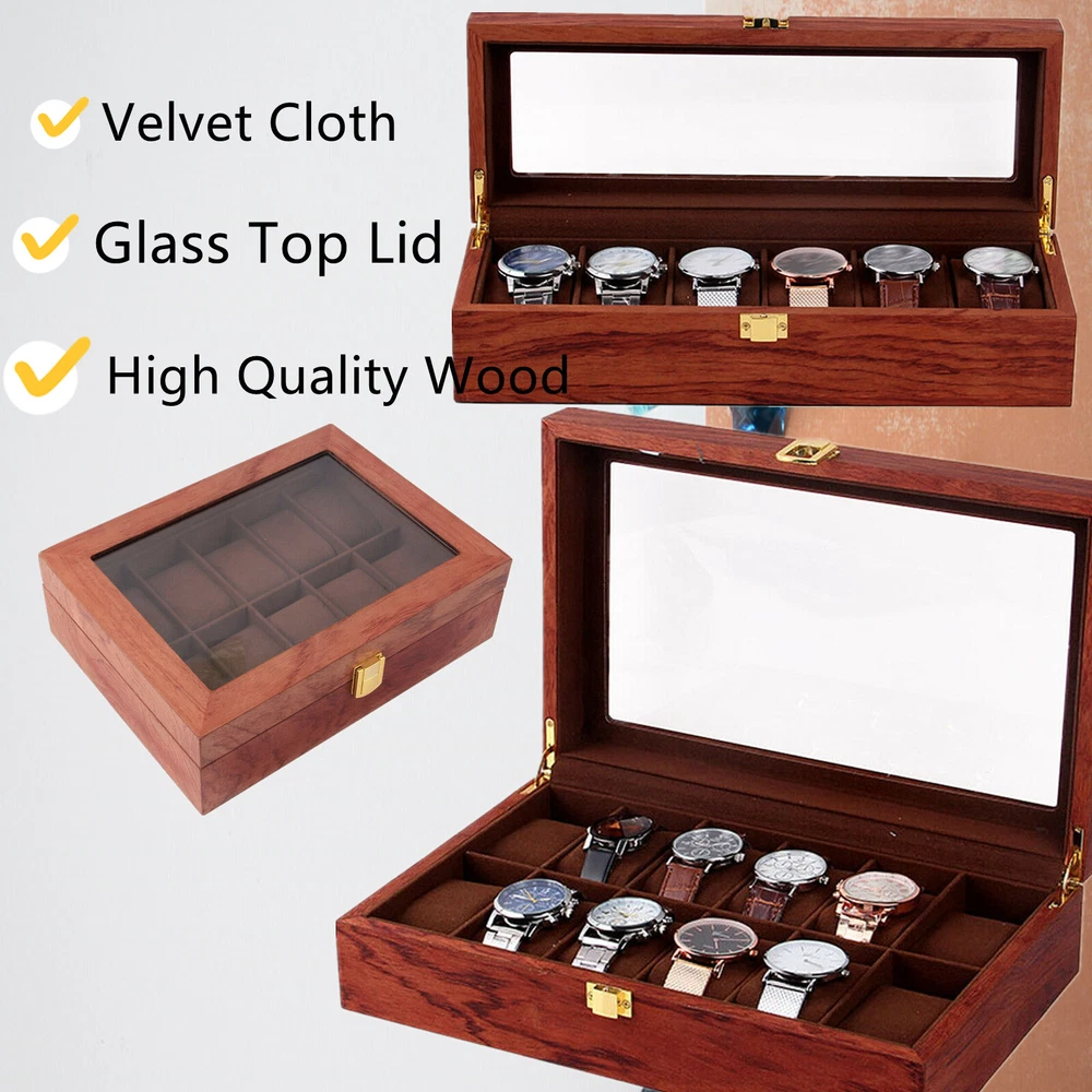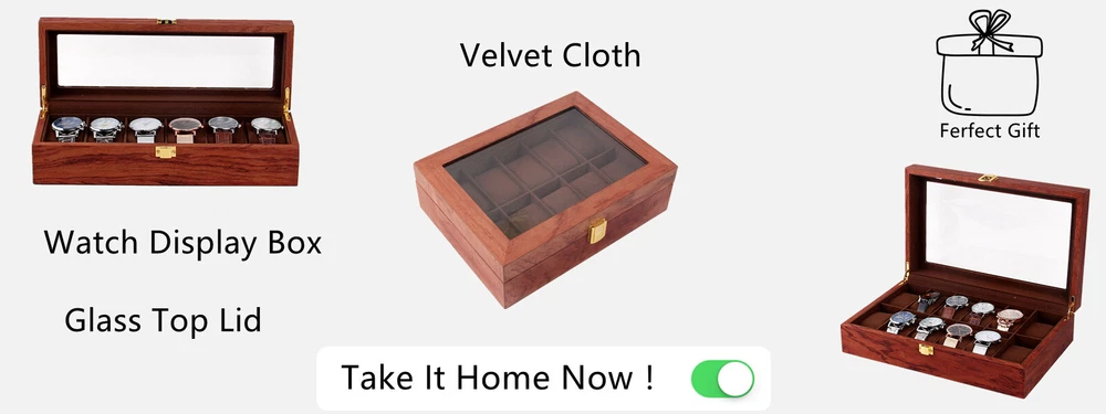This watch display box is absolutely stunning! The rich wooden finish and soft velvety lining give it a luxurious feel while keeping my watches safe from scratches. The 12 slots are perfect for organizing my collection, and the glass top lets me admire them without opening it. Super sturdy and elegant—great as a gift or for personal use. Love it!