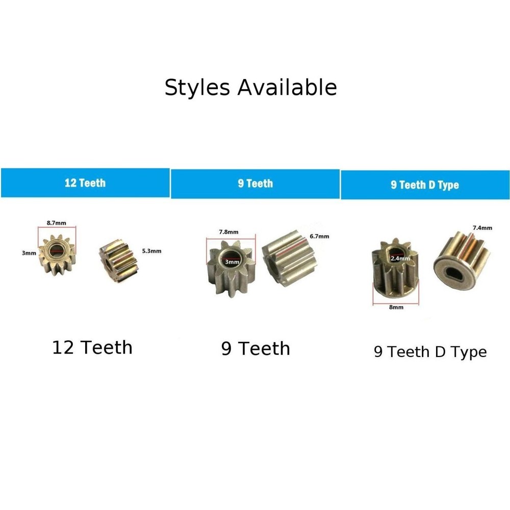 Product Description Features: Product Name: Gear Material: Metal Color: As shown Size: As shown Optional Type: 9 Teeth, 12 Teeth, 9 Teeth D Type Suitable for: Cordless Drill 550 Motor Quantity: 1Pc Package Included: 1 × Gear Note: 1.Transition: 1cm=10mm=0.39inch. 2. The real color of the item may be slightly different from the pictures shown on website caused by many factors such as brightness of your monitor and light brightness. 3. Please allow slight manual measurement deviation for the data. Payment Payment must be completed within 5 days. If you have any problems about payment, please contact us via ebay message. Delivery details We only ship to confirmed ebay Order addresses. Please comfirm that your Order address is in line with your shipping address. Please kindly note that the c ombined shipping is not provided because the shipping fee is calculated by weight. Also, the each additional item means exactly the the same color and size. It takes about 7 -15 working days to US; about 10-30 working days to other countries. Transit time may be a little delayed because of the bad weather and customs inspection . If you do not receive your item within 30 working days since payment finished, please contact us immediately for further assistance. Contact us We strive for 100% customer satisfaction! Positive Feedback is very important to us. If you have any questions, p lease feel free to contact us via "Ask seller a question" . We will reply your email within 24 working hours.