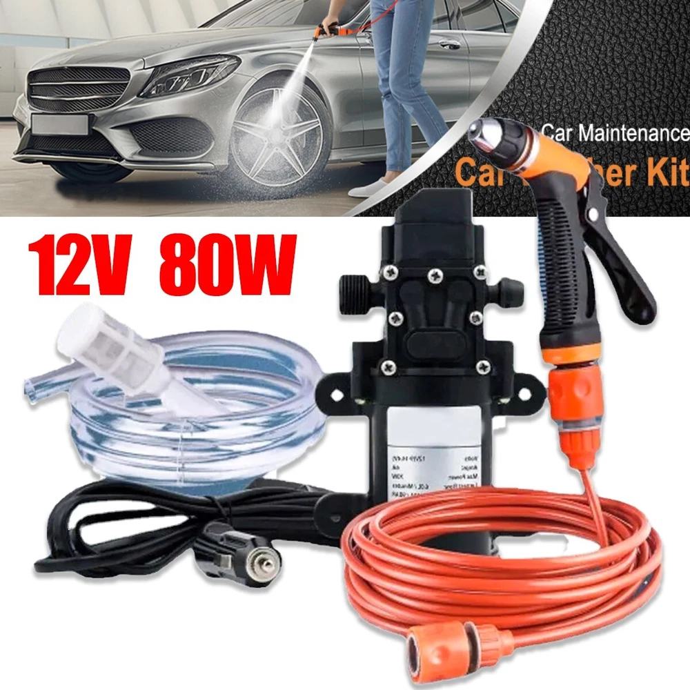 Feature: 【High Pressure Washer】Car high pressure washer 12V water pump car washer, using high-quality micro self-priming pump and high-efficiency DC motor, the pump is a low-power and energy-saving product. 80W 130PSI, High Pressure Wash Kit for Car, Garden, Home, Cleaning, Pet Shower. 【Portable and Compact】The water pipe can be easily connected with the water gun and water pump, and the water gun is comfortable and convenient to hold. Lightweight and compact small design makes it easier to use and clean quickly indoors or outdoors or anywhere. 【4 Adjustable Spray Modes】A total of 4 spray modes of straight line, dispersion and water spray are available for you to choose. Just rotate the spray gun nozzle to meet your different applications. There is always a way that works for you. 【Safety 12V Water Pump】The car washer Kit with DV 12V safety voltage is safe for adults, children and pets. Comes with over-current protection function car cigarette lighter adapter, built-in fuse protection, which can prolong the life. 【Daily Multipurpose】Are you looking for a multifunctional cleaning Power Washer suitable for household projects? This pressure washer is best for you! In addition to washing the car, the portable pressure washer is also suitable for watering flowers, washing the bathroom, cleaning windows, cleaning floors, cleaning air conditioners, and cleaning windows. Specification: Voltage: DC 12V Power: 80W Power Source:Car Cigarette Lighter Max Pressure:130PSI (1.1MPA) Flow: 5.5L/min PVC Pipe (Water in)length: 1.2 meters Pressure pipe(Water Out) length: 6 meters Car cigarette charger line length: 3 meters Package Include: PVC Pipe with Connector (Water Out) x 1 High Presure Water Gun x 1 Pipe with Water In Filter x 1 Water Pump x 1 Car Cigarette Charger line x 1 Instruction: 1. The first gun or brush is connected with a water pipe, the water inlet pipe into the bucket, the cigarette lighter plug into the car cigarette lighter socket, wire pull out close the door, if there is a switch on the power supply check Water Leakage place, everything is ready, according to the center on both sides from the top to the bottom of the law, start cleaning from the roof 2. Wash the dirty dirt on the car and the surface of car body with water gun. Wash it with brush after washing 3. After washing, the washing liquid sprayed on the surface of the paint, while the spraying with semi wet towel to wipe the body suede washed part 4. Such as drying the body, and then polished with cotton towel, you can be bright as new Matters needing attention In winter, in order to prevent and storage water ice, take out the water pipe and then spray for a period of time, emptying the water until It is forbidden to wash the machine into the water (to avoid damaging the electrical components) Note: the pump is not waterproof, please put it away from water. The car washer should be placed in the dry place