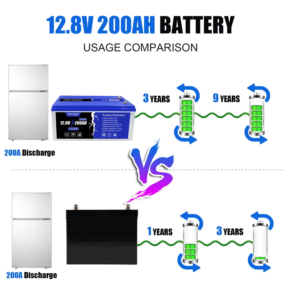 WHAT YOU GET: Our premium LiFePO4 Battery delivers (200% More Power, 1/2 the Weight, Charges 5X Faster, and Lasts 4X Longer than traditional SLA batteries). Note: Much Lifepo4 Battery on the market actually use Grade B or C Cell, which have large internal resistance and short battery life. Our Lifepo4 Battery uses Grade A Cell , with a low-temperature charging function, 2000+ deep cycles and a long lifespan. Weize Smart Lithium Iron Phosphate Battery integrates smart battery management system (BMS) not only protects this 12-Volt LiFePO4 battery from various abnormal conditions: overcharge, deep discharge, overloading, overheating. The state-of-the-art battery cells ensure a long cycle life and exceptional discharge performance. Compare to heavy-duty lead acid battery, this lightweight, auto-balanced, ultra-safe, long-cycle-life lithium-ion battery is perfect for your outdoor using. Parcel Included: 1 x Battery (terminal screws included, but no any other accessories). Note: tighten the battery terminals securely and use appropriate size wiring, or it could result in overheating and battery damage. Battery Terminal: F12 (M8) Deep Cycle Life: 4500-8000 cycles (lead acid battery only 200-500 cycles), has much longer cycle life than lead acid.