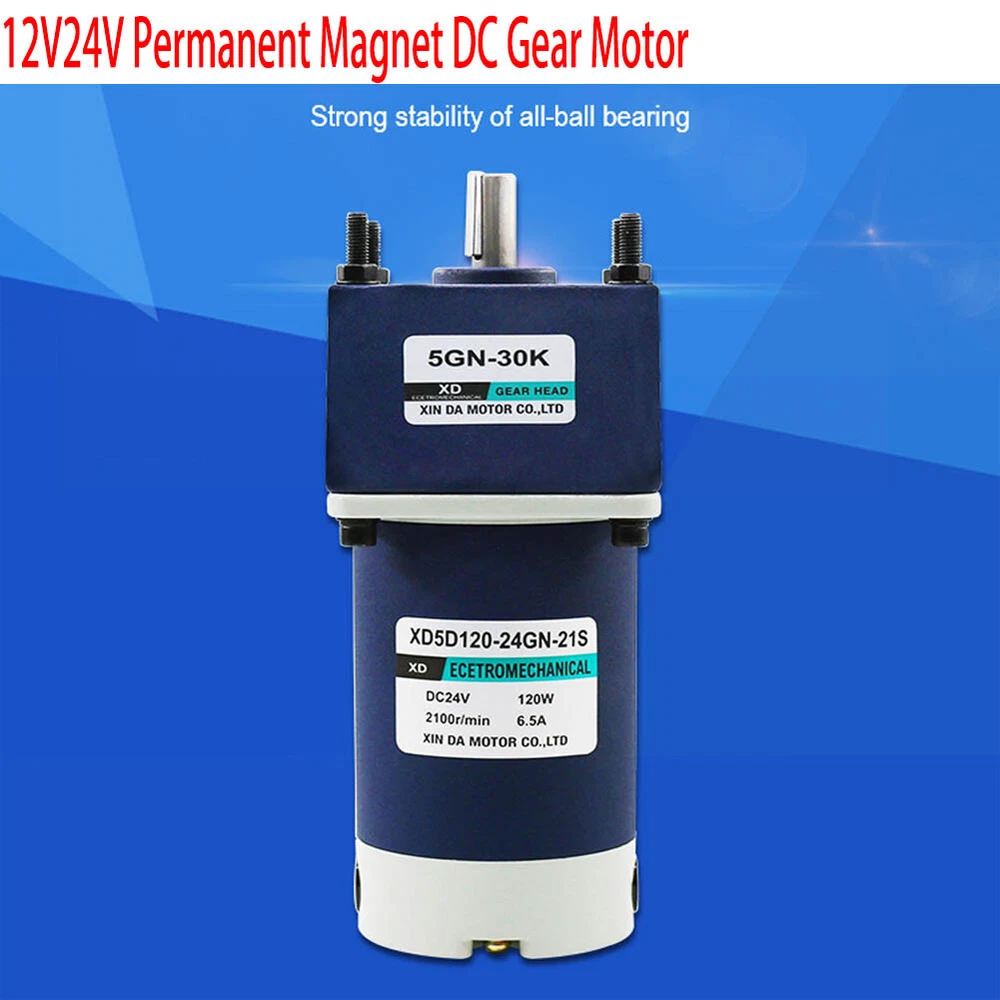 Description: Model: 5D-120GN Voltage: DC12V/24V Power: 120W Speed: 10-1000rpm Motor size: 90*203mm Shaft size: 12*27mm Motor weight: 3kg Feature: 1. Forward / reverse 2. Speed adjustable 3. Big torque 4. All-metal gear Included: 1 x RV Worm Gear Gearbox