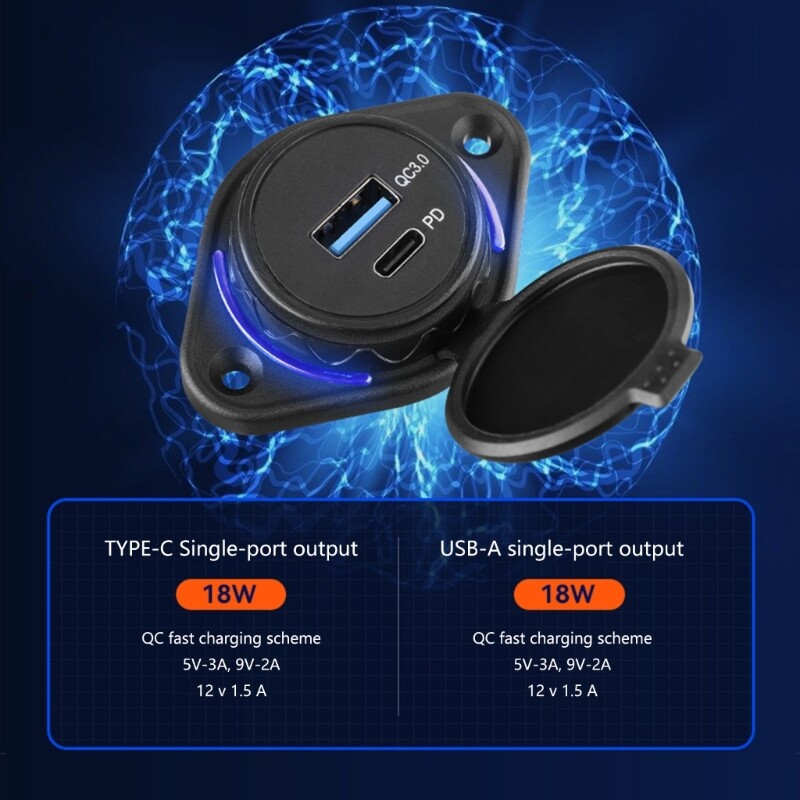 Features: 36W Quick Charge3.0 USB and PD3.0 Type C Port: 18W each port which is faster than conventional Suitable for all popular USB devices, which applies to Car, Motorbike, Bus, RVs, Boats, and more 12/24V vehicle. two devices simultaneously with our fast USB for buses and long distance travel. Specially for buses, our efficient and user friendly ensures uninterrupted charging. Perfect for travelers who need to multiple devices during their journey. Ensure uninterrupted charging for your smartphones and tablets while traveling by bus. Specifications: Material:ABS Input:DC12V-24V Output:18W+18W Package Includes: 1x USB Outlet Panel note: Please allow 1mm errors due to manual measurement. Due to the difference between different monitors, the picture may not reflect the actual color of the item.