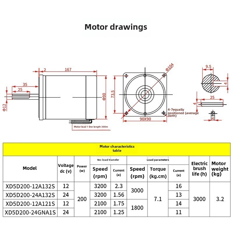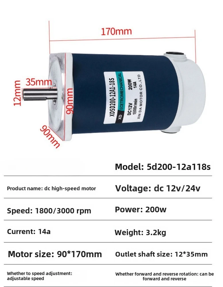 12V24V DC motor 200W high torque speed regulating high speed motor miniature permanent magnet positive and negative motor
