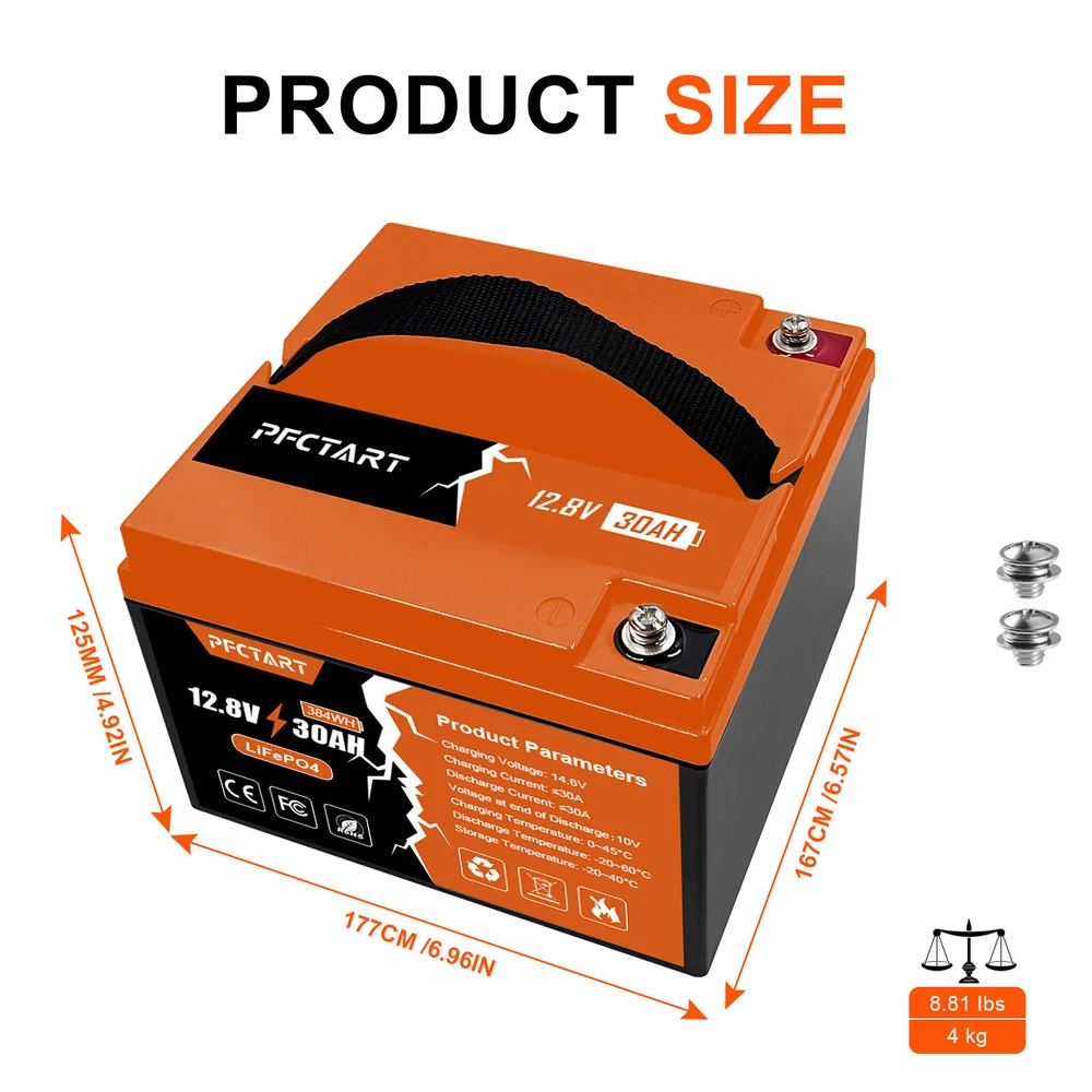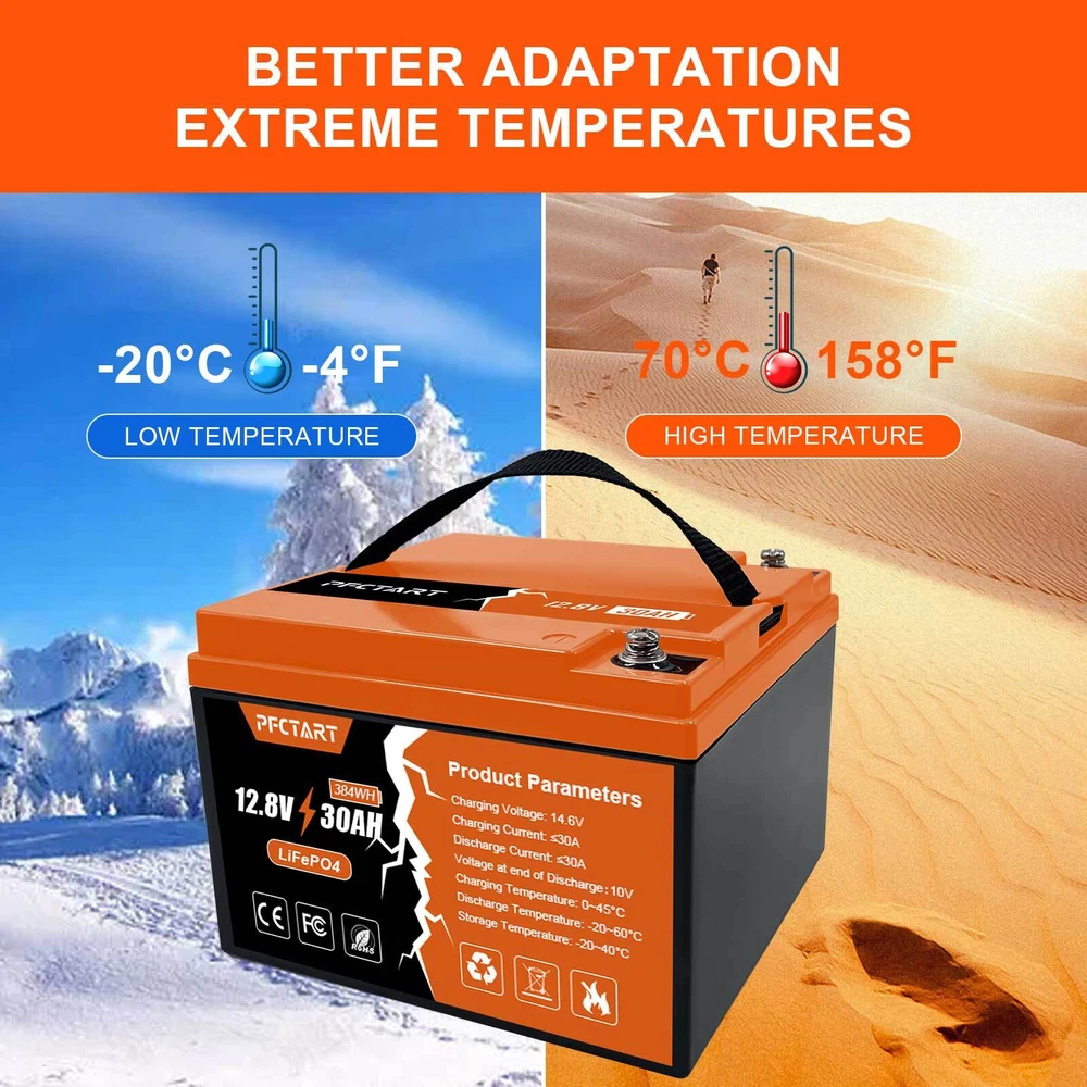 12V 100Ah Deep Cycle Litime LiFePO4 Lithium Battery for RV Solar Off-grid Motor 249.99 USD Free shipping 100AH 12.8V Deep Cycle Lithium Battery LiFePO4 for Boat Home Campers Off-Grid 285.79 USD Free shipping PFCTART 1280Wh 12V 100Ah LiFePO4 Battery Built-in BMS Rechargeable For Home RV 285.99 USD Free shipping 30Ah LiFePO4 Lithium Battery 4500+ Deep Cycles for Golf cart RV Boat Solar Panel 223.99 USD Free shipping 12V Lithium Battery 100Ah LiFePO4 Deep Cycle for Solar RV Marine Home Off-grid 285.99 USD Free shipping 1280Wh 12.8V 100Ah LiFePO4 Lithium Battery Built-in BMS For RV Off-Grid Solar 269.99 USD Free shipping 12V 100AH LiFePO4 Lithium Battery Rechargeable BMS for RV Solar Trolling Motor 285.98 USD Free shipping 200Ah 12.8V Deep Cycle LiFePO4 Lithium Battery BMS for RV Home Marine Garden US 519.99 USD Free shipping 12.8V 50Ah LiFePO4 Deep Cycle Lithium Battery 640Wh for RV Solar System Marine 179.79 USD Free shipping 12V Lifepo4 Cell 100Ah LiFePO4 Lithium Deep Cycle Battery for RV Solar System US 309.29 USD Free shipping NEW 12V 150Ah LiFePO4 Deep Cycle Lithium Rechargeable Battery RV Solar System 359.99 USD Free shipping 200Ah LiFePO4 Cell Lithium Battery 12V Rechargeable w/BMS For RV Homer Boat NEW 519.99 USD Free shipping NEW-00021 12V 30Ah Deep Cycle LiFePO4 Lithium Battery 30A BMS for Golf Car Trolling Motor PRODUCT DESCRIPTION Features 【Automotive Grade Lithium Battery】 PFCTART lithium iron batteries have exceptional quality since they are manufactured by Automotive Grade LiFePO4 Cells with higher energy density, more stable performance & greater power. Highest-level safety based on UL Testing Certificate for the cell inside the battery.This makes li-iron batteries perfect for solar home, RV, campers,motor homes, off-grid applications. 【10 Years lifetime】PFCTART LiFePO4 battery provides 4500+ cycles, which is more than 10 times to Lead Acid with 300~600 cycles. PFCTART LiFePO4 battery has a 10-year service life, three times longer than the Lead Acid’s 3-year lifetime. 【95%* Efficiency】 PFCTART LiFePO4 battery’s flat discharge curve holds above 12.8V for up to 95%,of its capacity usage, providing astronomical boosts in run-time compared to only 50% in Lead Acid. This product is your best choice for outdoor camping power and indoor easy installation. 【1/3* Lightweight】 PFCTART LiFePO4 Battery weighs only 8.81 lbs for one module, only 1/3* the weight of lead acid batteries, which makes it an easy choice for RVs, Marine and Off-Grid Applications when mounting or mobility is in the consideration. 【100% Protection】 PFCTART LiFePO4 battery has built-in BMS (Battery Management System) to protect it from overcharge, over-discharge, over-current, and short circuit with excellent self-discharge rate. Built-in high-temp cut off prevents charging over 167 °F (75 °C). Without memory effect, no matter what state the battery is, it can be used as soon as it is charged. PFCTART LiFePO4 battery is IP65 level waterproof, which set you free from worrying to install indoors or outdoors. Specifications Battery type: LIFEPO4 MODEL: 30Ah 12.8V(4S5P) Rated capacity: 30Ah(384WH) Normal voltage: 12.8V Discharge termination voltage: 10.0V Charging voltage: 14.6V Internal resistance: ≤180mΩ Single cell: IFR 32700 3.2V 6000mAh Standard charging. Continuous current: 0.2C5A Continuous voltage: 14.6V Cut-off current: 0.01 C Standard discharge: Constant current 0.2C5A end voltage 10.0V Max. charging continuous current: 30A Maximum discharge continuous current: 30A Operating temperature range. Charge: 0~45℃ Discharge: -20~60℃ Product size: 177*167*125mm Weight : 4kg BMS Protection Cell overcharge detection voltage:3.90V±50mV Cell overcharge recovery voltage:3.80V±100mV Cell over-discharge detection voltage:2.00V±100mV Cell over-discharge recovery voltage:2.50V±100mV Rated operational charge current:30A Over current detection:60±5A PCM impedance:≤50mΩ Note It does not have series/parallel protocol, please do not use it for multiple series or parallel installations. About Us Payment Shipping Returns Contact Us Welcome to our store, your support is the biggest driving force for us to move forward. Our main business is solar street lights, solar controllers, solar panels and so on. The product is directly connected with the factory to ensure product quality. Please rest assured to buy, we will provide you with a perfect shopping experience! We accept payment via Paypal only. Payment must be completed within 10 days. If you have any problems about payment, please contact us via ebay message. We only ship to confirmed Paypal addresses. Please comfirm that your paypal address is in line with your shipping address. Please kindly note that the combined shipping is not provided because the shipping fee is calculated by weight. Also, the each additional item means exactly the the same color and size. It takes about 7-15 working days to US; about 10-30 working days to other countries. Transit time may be a little delayed because of the bad weather and customs inspection. If you do not receive your item within 30 working days since payment finished, please contact us immediately for further assistance. If you have any issue about Item. Please contact us with 7 days since you receive the item and and return to us within 30 days from the delivery date for exchange or refund. If you need return, please contact our customer service representative, let us know the detailed problem and send us some pictures for confirmation. We strive for 100% customer satisfaction! Positive Feedback is very important to us. If you have any questions, please feel free to contact us via "Ask seller a question" . We will reply your email within 24 working hours. About Us Welcome to our store, your support is the biggest driving force for us to move forward. Our main business is solar street lights, solar controllers, solar panels and so on. The product is directly connected with the factory to ensure produ