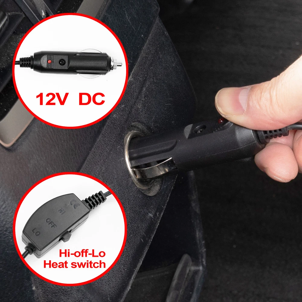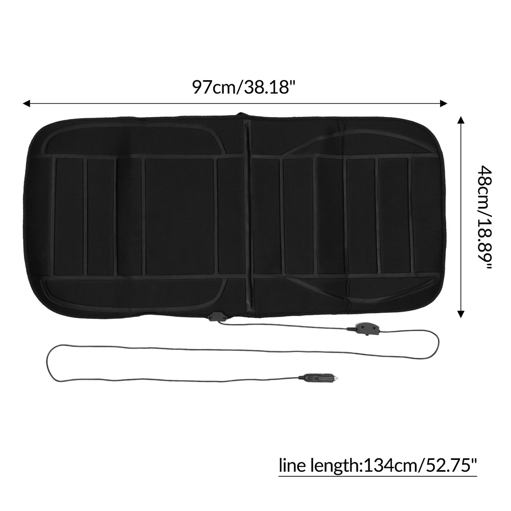 Product:CAR HEATED SEAT CUSHION Color: Black Size: 98 * 46cm Input Current: 12V DC Maximum power consumption: 43W Low power consumption: 32W Power line: 110CM Surface Material: Polyester Features: 1; high-quality breathable fabrics, superior workmanship 2; three thick sponge softer 3. The high-resistance wire heating 4. Intelligent power thermal protection 5. New heating design, quality cigarette lighter plug