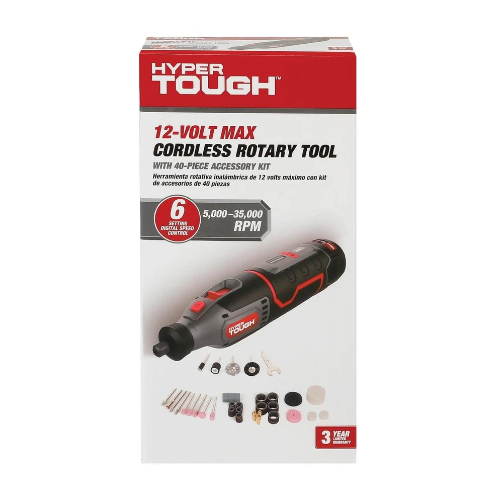 12V Max Cordless Rotary Tool is perfect for detailed work, offering versatility with its 40-piece accessory kit. Powered by a 12V 2.0Ah lithium-ion battery, it delivers variable speeds from 5,000 to 35,000 RPM with a max setting for more demanding tasks. The tool features a battery capacity indicator and LED speed controls, allowing easy adjustments via Add & Subtract buttons. Weighing just 1.32 lbs, it’s lightweight and comfortable to use for extended periods. The kit also includes a charger, making it ideal for any project requiring precision and control. 12V Max Cordless Rotary Tool with 40-Piece Accessory Kit Includes 12V 2.0Ah Lithium-Ion Battery and Charger Variable speeds (6 + MAX setting) Battery capacity indicator LED indicator for variable speed via Add & Subtract button