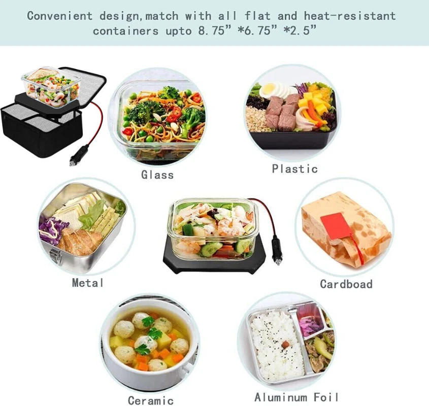 Store Categories Store Categories Other Electric12V Lunch Box Food Warmer Heater Container Portable Heating Hot Meal Car Product Description Type Insulated Lunch Bag Brand Unbranded Material Aluminium MPN Does Not Apply Country/Region of Manufacture China Style Modern Instruction Payment Policy Shipping Policy Returns Policy Instruction 100% Brand new and high quality! 1.Which containers are available? Compatible with most flat-bottomed heat-resisting containers, including glass, plastic, Tupperware,or metal,our oven makes cooking fun! 2.How it works? Place food in tote - Choose your favorite fresh or prepared meal from the refrigerator or freezer. Go about your day - Simply plug in the Triangle Power Mini and enjoy your daily activities knowing that your Triangle Power Mini is safely warming your meal. Eat and enjoy - This is the best part. You deserve to enjoy a wonderful hot meal.The Triangle Power Mini makes sure it's cooked to perfection and ready when you are. 3.Why you choose it? Save money – hot meals without the expense of eating out; Eat healthy – home cooked meals so you know what's in it; Convenient – plug it in and it cooks while you work or play; Super Efficient – costs less than a penny per meal; Easy – no programs or buttons to push, use almost any type of flat bottom, sealed container. 4.Features Watt: 45w / 0.5 amp Working Voltage: 12v/110V Bag Dimension: 11.41”*8.26”*4.33” inch Length of Electrical Cord: 44 inch 5.PLEASE NOTICE: Please don't worry about it will cause a fire,When you plug it, the oven will slowly heat your food till temperature 239°F, but then it will auto reduce the temperature down until 149°F. Please know that the temperature is not fixed at 230°F, It cycles between 149°F-239°F. We also promise we will be responsible for all our custmer and every order, please contact us for free,if you have any question about the product,we will try our best to help you sort it out. Payment Policy 1.We accept PayPal only. 2.All major credit cards are accepted through secure payment processor PayPal. 3.Payment must be received within 7 business days of auction closing. 4.We ship to your eBay or Paypal address. Please make sure your eBay and Paypal address is correct before you pay. Shipping Policy 1.We ship to your eBay or Paypal address. Please make sure your eBay and Paypal address is correct before you pay. 2.Items will be shipped within 1-3 business day when we received payment. 3.Delivery time depends on destination and other factors; Returns Policy 1. Please leave positive feedback and 5-star rating, it helps us do better for you. 2. Please contact us if you have any questions before or after purchase. About us Our warehouse is in China and the USA, we put a lot of effort on QC, and provide high quality products to you.We are offering life-time technical support, and the highest level of customer service, please feel free to contact us by ebay message with any questions, concerns or feedback. You will be replied in 24 hours (business days) with satisfied answer. Copyright © 2024 Dianxiaomi