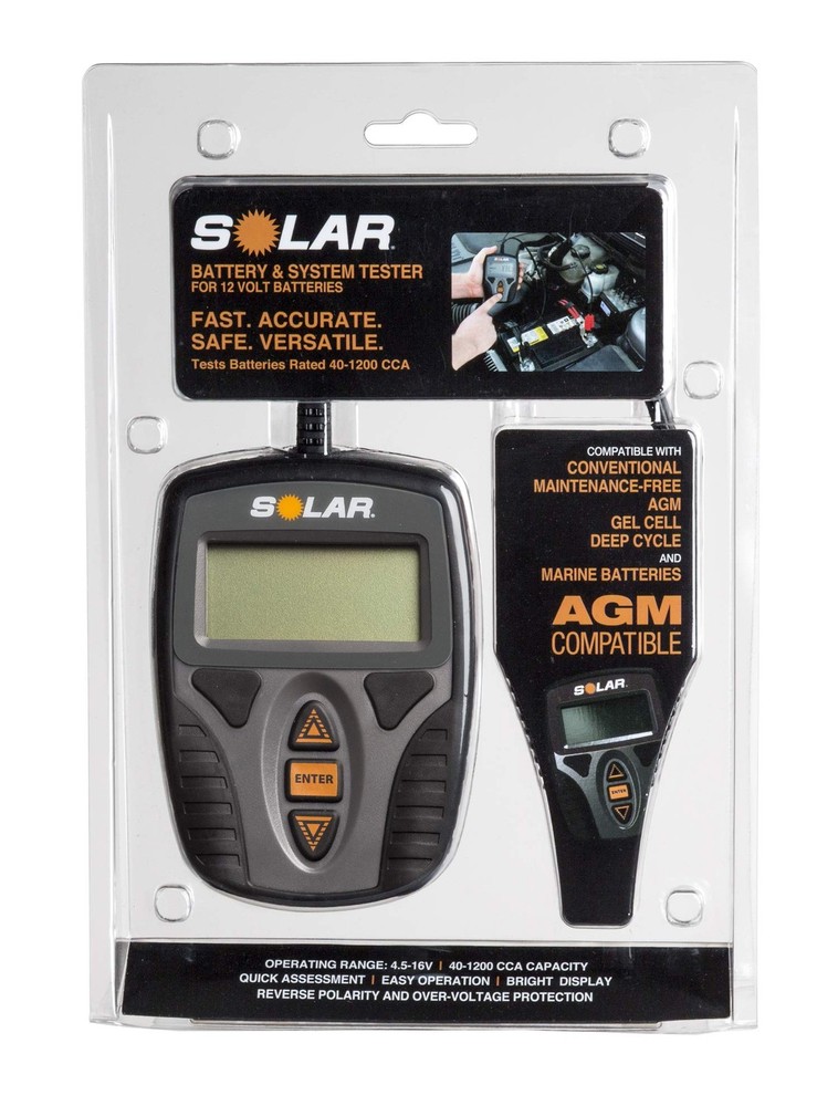 12 Volt battery and system testing 40-1200 CCA testing capacity 7-15V operating range Compatible with many battery types, including Flooded, AGM, Spiral and Gel Cell LCD display for optimal viewing in all lighting environments