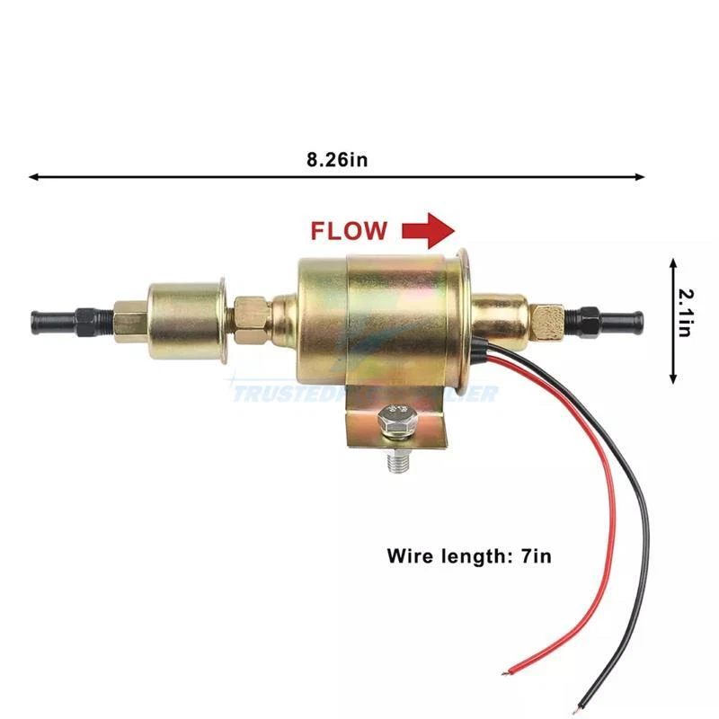 Product Description 12V 12S Universal Electric Fuel Pump Inline Low Pressure 5/16" 5-9PSI Gas E8012S Description: This universal 12 volt electric fuel pump may be used as booster, standby unit or as a completely independent fuel pump installation. It features a two wire design,which can be mounted anywhere. 100% mechanically tested prior to leaving the factory ensures optimal performance and enhanced durability. Built to strict quality control standards Specification: Currents: 1-2A Voltage: 12V Flow Rate: 30 Gallon Per Hour Shut off pressure: 5-9 PSI Fit Hose Size: 5/16" Inlet and Outlet diameter: 8mm Crossreference: E8012S, FD0002, P60430, EP12S, 6414671, 12S, E8016S Application: Universal . Pump is self priming and designed for Import Carburetor equipped Cars and Trucks and also Replacement Performance Carburetors . - All 12 Volt Cars , Trucks , Boats & Generators Package included: 1x Electric Fuel Pump Set Fitment : BUICK APOLLO 1973-1974 BUICK CENTURY 1955-1975 BUICK REGAL 1975-1987 BUICK RIVIERA 1979-1984 BUICK ROADMASTER 1955-1956 BUICK SKYLARK 1975 BUICK SPECIAL 1955-1956 CADILLAC DEVILLE 1981 CADILLAC ELDORADO 1981-1982 CADILLAC FLEETWOOD 1981 CADILLAC SEVILLE 1981-1982 CHEVROLET BEL AIR 1958 CHEVROLET BISCAYNE 1958 CHEVROLET BROOKWOOD 1958 CHEVROLET CAMARO 1986-1987 CHEVROLET CHEVELLE 1967 CHEVROLET DEL RAY 1958 CHEVROLET EL CAMINO 1967-1987 CHEVROLET IMPALA 1958 CHEVROLET MALIBU 1967 CHEVROLET MONTE CARLO 1987 CHEVROLET NOMAD 1958 CHEVROLET S10 BLAZER 1983-1984 CHEVROLET S10 PICKUP 1983-1984 CHEVROLET SEDAN DELIVERY 1958 CHEVROLET TRUCK 1958 CHEVROLET YEOMAN 1958 FORD E-100 1974 FORD E-200 ECONOLINE 1974 FORD E-300 ECONOLINE 1974 GMC CABALLERO 1987 GMC S15 JIMMY 1983-1984 GMC S15 PICKUP 1983-1984 JEEP GLADIATOR 1965-1968 JEEP J-100 1965-1968 JEEP J-200 1965 JEEP J-210 1965 JEEP J-220 1965 JEEP J-230 1965 JEEP J-2500 1965-1968 JEEP J-2600 1965-1968 JEEP J-2700 1965-1968 JEEP J-2800 1965-1968 JEEP J-300 1965 JEEP J-310 1965 JEEP J-320 1965 JEEP J-330 1965 JEEP J-3500 1965-1968 JEEP J-3600 1965-1968 JEEP J-3700 1965-1968 JEEP J-3800 1965-1968 JEEP WAGONEER 1965-1968 MERCURY COLONY PARK 1964 MERCURY COMMUTER 1964 MERCURY MARAUDER 1964 MERCURY MONTCLAIR 1964 MERCURY MONTEREY 1964 MERCURY PARK LANE 1964 OLDSMOBILE 442 1964 OLDSMOBILE 88 1955-1956 OLDSMOBILE 98 1955-1956 OLDSMOBILE CUTLASS 1964 OLDSMOBILE CUTLASS SALON 1987 OLDSMOBILE CUTLASS SUPREME 1987 OLDSMOBILE F85 1964 OLDSMOBILE JETSTAR 88 1964 OLDSMOBILE SUPER 88 1955-1956 OLDSMOBILE TORONADO 1981-1984 OLDSMOBILE VISTA CRUISER 1964 PLYMOUTH BARRACUDA 1970-1971 PLYMOUTH BELVEDERE 1970 PLYMOUTH DUSTER 1970-1971 PLYMOUTH FURY 1970-1971 PLYMOUTH SATELLITE 1970-1971 PLYMOUTH SCAMP 1971 PLYMOUTH VALIANT 1970-1971 PONTIAC CATALINA 1956 PONTIAC CHIEFTAIN 1956 PONTIAC FIREBIRD 1986-1987 PONTIAC GRAND PRIX 1987 PONTIAC STAR CHIEF 1956 About Us Payment Shipping Returns Contact Us 1. Unless specified otherwise, all our products are IN STOCK and are shipped from USA Local warehouse - Not Overseas! 2. We provide a 30 day Satisfaction Guarantee or your money back (provided items are in the same new and resaleable condition.) 3. We have a PayPal Verified Business Account, please buy with Confidence! 4. Every item will be tesrted before send.We know our products well and if we don't have the answers we will do our best to find them for you! 5. Our friendly team look forward to serving you! Your satisfaction is our No.1 Priority We will do our best to satisfacy you. 1.Paypal, Credit Card, G Pay etc, many payment way is accepted. 2.Please be sure your shipping address is correct before make a payment. 1.We will ship out the item within 1-3 business days after comfirming the payment, appreciate your patience. 2.If the items are broken on the way(we will check the orders clearly before we sent them),please contact us in 3 days you received it. We will send you a new one or refund your payment. 1.We stand behind every buyer.Items can be returned for exchange or refund within 30 days. 2.Please contact us when you have any confusion of our item, we will solve the trouble for you as soon as possible. 1.This is professional Seller.We will reply your message within 24 hours. 2.Please contact us whenever you have any question about the item. We will deal with it as soon as possible. 3. If you are unhappy with the item or our service,please Contact Us before leave feedback,just give me a chance,thank you! About Us 1. Unless specified otherwise, all our products are IN STOCK and are shipped from USA Local warehouse - Not Overseas! 2. We provide a 30 day Satisfaction Guarantee or your money back (provided items are in the same new and resaleable condition.) 3. We have a PayPal Verified Business Account, please buy with Confidence! 4. Every item will be tesrted before send.We know our products well and if we don't have the answers we will do our best to find them for you! 5. Our friendly team look forward to serving you! Your satisfaction is our No.1 Priority We will do our best to satisfacy you. Payment 1.Paypal, Credit Card, G Pay etc, many payment way is accepted. 2.Please be sure your shipping address is correct before make a payment. Shipping 1.We will ship out the item within 1-3 business days after comfirming the payment, appreciate your patience. 2.If the items are broken on the way(we will check the orders clearly before we sent them),please contact us in 3 days you received it. We will send you a new one or refund your payment. Returns 1.We stand behind every buyer.Items can be returned for exchange or refund within 30 days. 2.Please contact us when you have any confusion of our item, we will solve the trouble for you as soon as possible. Contact Us 1.This is professional Seller.We will reply your message within 24 hours. 2.Please contact us whenever you have any question about the item. We will deal with it as soon as possible. 3. If you are unhappy with the item or our service,please Contact Us before leave feedback,just give me a chance,thank y