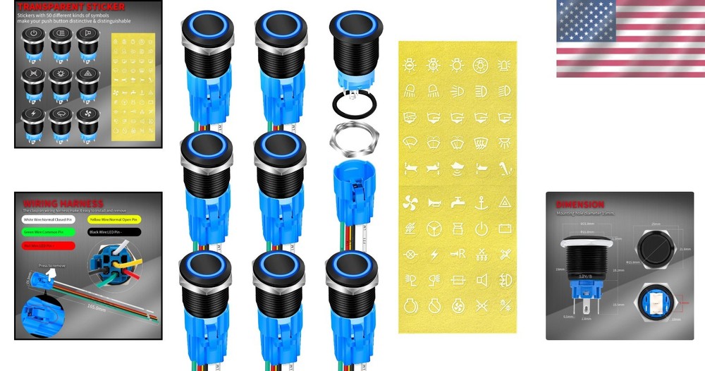 12V Waterproof Marine Switch with Blue LED - 19mm Latching Push Button - 8 Pack ‹ › ‹ › ‹ › ‹ › ‹ › ‹ › ‹ › ‹ › 12V Waterproof Marine Switch with Blue LED - 19mm Latching Push Button Specifications: 19mm marine latching push button switch Black metal design with blue LED lights Switch rating: 5A 12V DC Mounting hole size required: 3/4 inches Push button switch bezel diameter: 21.8mm Features: Each switch comes with label stickers featuring 50 different symbols for easy identification. LED illuminated with a stunning blue hue for visibility in any environment. IP65 waterproof rating ensures durability and reliability in wet or dusty conditions. Crafted from high-quality black aluminum for enhanced longevity and style. Applications: Ideal for marine use, RVs, cars, and motorcycles Perfect for electric equipment and household appliances Suitable for various machinery and devices that require reliable switching Why Choose Our 12V Waterproof Marine Switch? Elevate your electrical projects and enhance usability with our 12V Waterproof Marine Switch. Combining durability, functionality, and style, this self-locking push button switch is designed for both marine and automotive applications, seamlessly integrating into wet or dusty environments. The brilliant blue LED illumination not only provides an attractive accent but also ensures you can locate your switches effortlessly, even in dim lighting conditions. With each switch offering comprehensive labeling, you'll never have to second guess your equipment again. Don't settle for just any switch - choose security and style. Order your 8-pack of 12V Waterproof Marine Switches today, and bring reliable sophistication to all your electrical needs! Shipping Free & Fast Shipping - We offer free shipping to most of the USA with a normal delivery time of 3-10 businessdays. However, due to various situations, additional delivery time (up to 3 weeks) may be required for some items. Alternative Carriers - We may use alternative carriers (e.g. USPS, FedEx, UPS, etc.) to ensure your package arrives safely and on time. Due to the use of multiple carriers, we are unable to provide a tracking number automatically. Handling Time - Orders are processed and shipped within 1-5 business days of receiving cleared payment. Shipping Restrictions - Shipping to Alaska, Hawaii, Puerto Rico, Guam, and other US territories may incur shipping charges or delivery restrictions. Please contact us before ordering, or your order can be refunded/cancelled. State Restrictions - There may be restrictions based on your state of purchase. For example, certain items may not be shipped to California due to state regulations. Contact for Tracking Updates - If you require tracking updates or have any concerns about the delivery of your order, please feel free to contact us, and we will be happy to assist you. Return Please see our ebay return policy. We do not accept return on most products. This is to avoid customers mis-using ebay returns. All sales are final. Please be sure to check the return policy listed at the top of the listing. In rare cases, we may accept returns, if the buyer pays both ways shipping and 20% restocking fee. If you are un-sure of return policy of a particular item, please ask before buying. Payment We accept all major credit cards, PayPal, and Apple Pay for your convenience. Your payment information is secure and encrypted to ensure a safe and seamless transaction. Please complete your payment within 3 days of purchase to avoid any delays in shipping. Feedback Your feedback is extremely important to us. We strive to provide the best products and customer service possible. If you are satisfied with your purchase, please take a moment to leave us a positive review. If you have any concerns or issues with your order, please contact us before leaving negative feedback. We are committed to resolving any problems and ensuring your satisfaction. Contact Us If you have any questions or concerns, please feel free to reach out to our customer support team. You can contact us through the eBay messaging system. We are available Monday to Friday, 9:00 am to 5:00 pm EST, and we will do our best to respond to your inquiry within 24 hours. Buy it now and enjoy a pleasant shopping experience! UPC: Not Set Model: Not Set Unit Quantity: 8 Features: Illuminated,Waterproof,Label Stickers,Self-Locking,Push Button Contact Material: Aluminum,Metal Application: Automotive,Marine,RV,Household Appliances Smart Home Protocol: Not Set Smart Home Compatibility: Not Set Suitable For: Exterior Mounting Style: Panel Resistance Properties: Waterproof Compatible Wire Gauge (AWG): Not Set Room: Any Room Protection Properties: Not Set Brand: Unbranded Fuse Type: Switch Type: Push Button Switch Operation Method: On/Off Termination Type: Not Set Current Type: DC Finish: Not Set Switch Style: Push Button/Retractive Maximum Amperage: 5 A Coil Voltage: 12 V Current Rating: 5 A MPN: Not Set Number of Positions: 1 Number of Outlets: Not Set Button Color: Black Number of Phases: 1 Bulb Compatibility: LED Item Height: Not Set Item Length: Not Set Item Width: Not Set Number in Pack: 8 Contact Configuration: Not Set Number of Circuits: Not Set IP Rating: IP65 Orientation: Not Set Country/Region of Manufacture: Not Set Timer Control: Not Set Operating Temperature: Not Set Power: Not Set Unit Type: Not Set