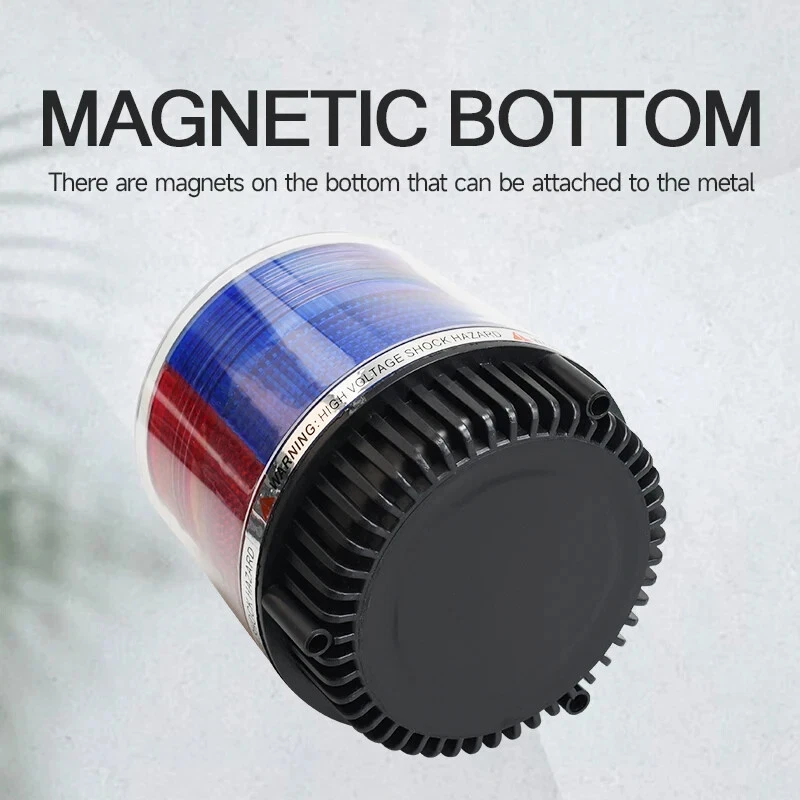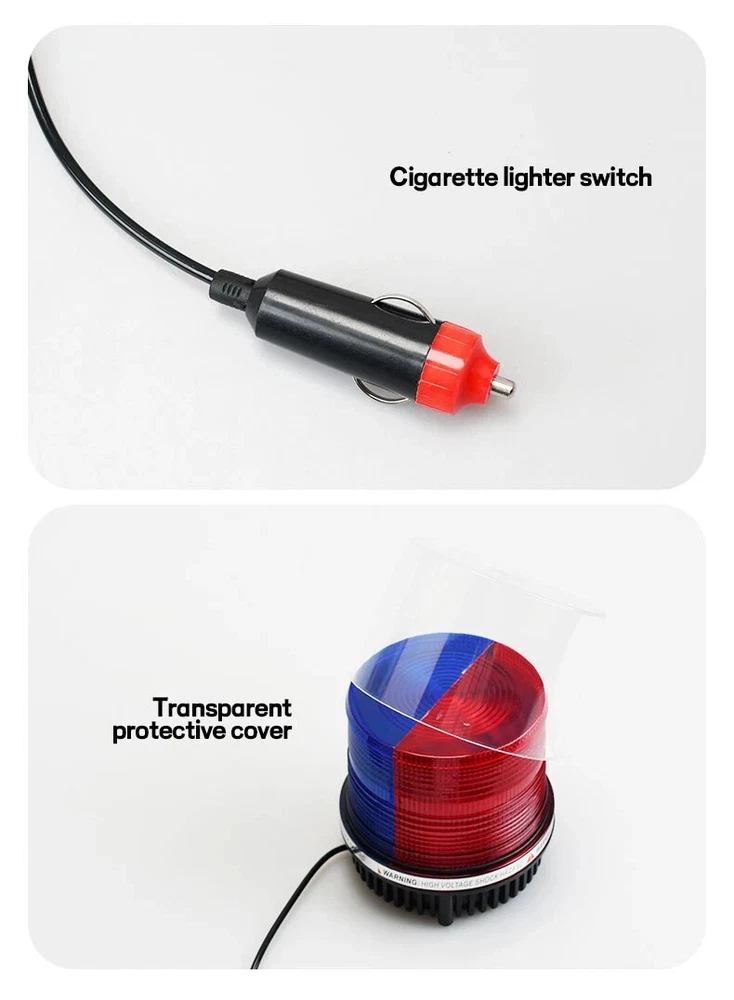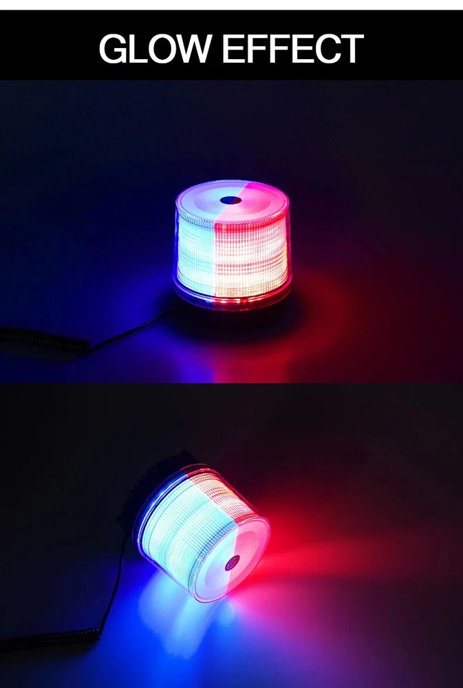 12V-24V LED Warning Light Magnetic Car Roof Strobe Signal Lamp Red Blue Rotating Road Engineering Emergency Strobe Light Specification 1.Voltage: 12V - 24V 2.Size: L107*H112mm 3.Material: PC lampshade + LED 4.Color: yellow / Red Blue Features 1.A good warning light in foggy and rainy days, to avoid car accident. 2.Add new charm to your car, to distinguish your car with other cars. 3.A good warning light in emergency car parking. 4.Alarm light ,Engineering light ,Police lamp ,Car Magnet Warning light, Strobe light ,Caution Light, Plug this into your cigarette lighter and with the magnetized bottom placed on any exterior metal.