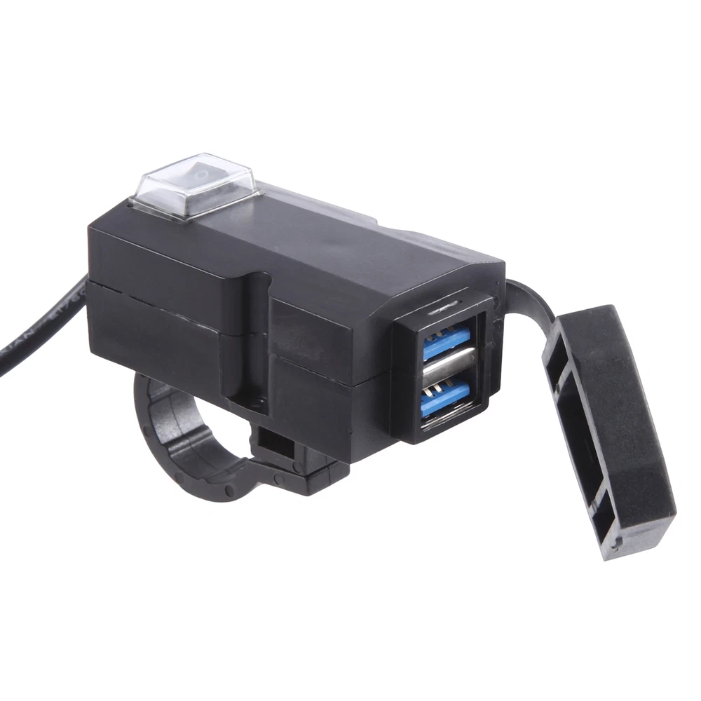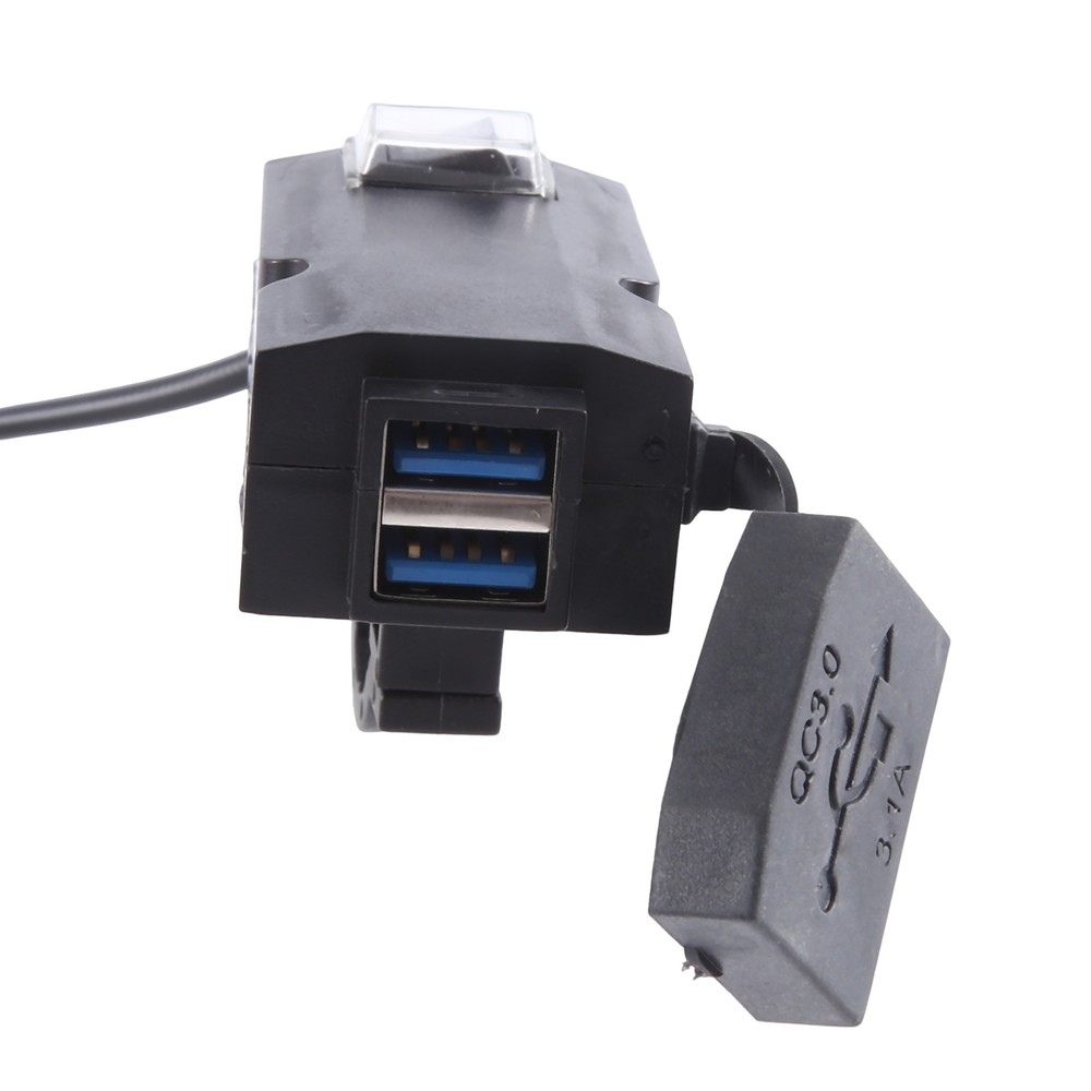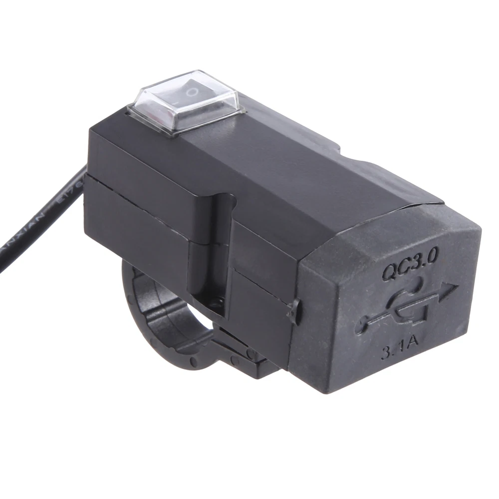 12V-24V QC3.0/3.1A Dual USB Port Motorcycle Handlebar Adapter Supply4720 DC 12-24V input, power outlet 3.1A. Works with most of USB-powered devices like fast charging phones, , android tablets, power , digital cameras, video games controllers, sports watch etc. The water and dust resistance by a rubber USB cover, protects internal circuit, effectively enhance its lifespan. It can charge your devices steadily and safely. Protects your devices from over-heat, over-current, over-voltage, overload, under-voltage and short-circuit. ON/OFF switch design,avoid power consumption. Handlebar installation and screw fixation both available. This USB charger socket fits for boat marine, ATVs, UTVs, Golf carts, or anywhere else can be thought of. QC3.0 Type Output voltage(Port 1/Port 2):5V 3.6A/9V 2A/12V 1.5A. 3.1A Type Output voltage(Port 1/Port 2):5V 3.1A USB adapters:2port. Length:1.2 meters Input voltage:DC12-24V Colour:Black Material:Plastic Size:6.2cm/2.44inch x 3.2cm/1.26inch x 2.2cm/0.87inch. Package Contents: 1 * Adapter