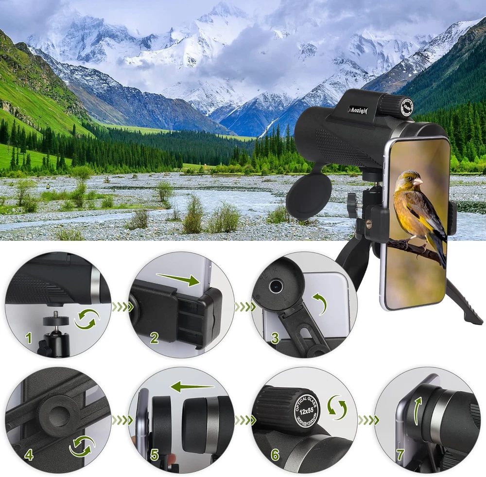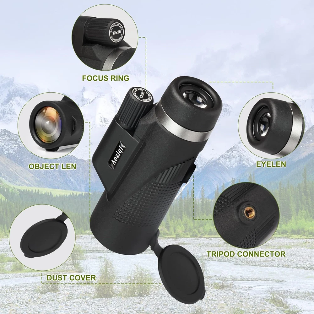 Store New Arrivals Add to Favorite View Feedback Contact 12X55 HD Monocular Telescope with Smartphone Holder, 2023 Waterproof Monocular, Lightweight Monocular for Bird Watching Hunting Camping Travel Star Watching Description Optical Tube Length 4.2 Inches Eye Piece Lens Description Prism Color Black Focus Type Manual Focus Country of Origin China Compatible Devices Smartphone Item Weight 1.32 pounds Lens Coating Description Fully Multi-Coated Objective Lens Diameter 50 months Product Dimensions 5"D x 3"W x 1"H Telescope Mount Description Fixed Mount Finderscope Reflex 12x55 High Power Monocular: Compared with other similar products, our products have a larger objective lens, wider field of view, and clearer picture. IPX7 Waterproof & Fog Proof Design: The mirror is full of high-purity nitrogen, waterproof, and antifogging. You can use it on the raining day and humid environments and do not need to worry about this item. Rich Accessories: Adapt to various application scenarios, simple and convenient operation. The monocular comes with a phone clip, tripod, 360° stabilizer, non-slip strap, cleaning cloth, and instruction manual. Compact Size and Versatility: This monocular can be tucked directly into your clothes pocket.it will show you a clearer and farther view, good for bird watching, hiking, concert, sightseeing, hunting, etc. HD Zoom Monocular: the item telescope with high-quality optics BAK-4 prism, light transmittance reaches above 99%, delivers more light to the view, reduces ghosting images and chromatic aberration, give you a feel of clear, bright, and colorful. Product Description Why Choose Aoziqi 12X50 HD Monocular Telescope? Bring the world 12X closer in a wide-angle view and enable you to capture clear and high-quality images. Provide up to 99.5% light transmittance across the entire visible range even in low-light conditions. The non-slip rubber and hand strap can prevent accidental slipping for easy single-hand operation. Built-in with lens dust cover and o-ring sealed optics to prevent moisture, dust, and debris from entering the optics. Equipped with a quick alignment smartphone holder and a sturdy tripod enables the capture of shake-free images and videos. High Powered Definition Monocular Prism with Smartphone Holder & Tripod for Bird Watching, Camping, Hiking, Hunting. Monocular is excellent for hiking, hunting, climbing, bird watching, wildlife Ball games, scenic viewing, golf, range observation, surveillance, and travel. Monocular has high power magnification to give you the best view during your outdoor adventures. High Power Magnification Fully multi-coated green film lens Upgraded 22mm eye lens HD Zoom Focus Durable rubber armour Smartphone adapter Adjustable Large Tripod Adjustable Focus Wheel With its 12X power magnification and 50mm object lens, the high-power monocular telescope can bring the world 12X closer in a wide-angle and clear view. Newly Designed Hand Strap helps you hold the monocular more securely in your hand. Quick Capture what you’ve spotted with the light hand strap. Easy to Get a Stable Image , enhance the viewing experience. ABOUT US We offer the best prices around on high quality products. Our E-store includes media such as books, movies, music and games while offering electronics, toys, sporting apparel, clothing, tools, general home, garden items and more. SHIPPING We are always working hard to ensure your package arrives as soon as possible. Please understand that some factors like weather, high postal traffic, and the performance of shipping companies are outside of our control. We offer free shipping to the lower 48 states and ship within 2 business days of payment, usually sooner. We do not accept P.O. Boxes. Please provide a physical address. For shipping outside of the continental USA, we only use eBay's Global Shipping Program.The item is shipped to KY and then sent to the rest of the world. International customers are responsible for all duties and taxes. Continue to check out in order to calculate costs for shipping the item to your country. Messages regarding eBay's Global Shipping Program MUST be directed at eBay EXCLUSIVELY. RETURNS We offer a 30-Day Return Policy on items which you are not completely satisfied with. You have the option for a full-refund or an exchange of the item. No returns are available on items shipped outside of the USA. PAYMENT We accept PayPal. CONTACT US This page content is yet to come Please ad us to your favorite seller and visit again later Thank You CUSTOMER SATISFACTION We try our very best to make sure every customer is completely satisfied. If there's a problem, message us! We're happy to help. WE ACCEPT Copyright © 2021 AutoDS. | All Rights Reserved