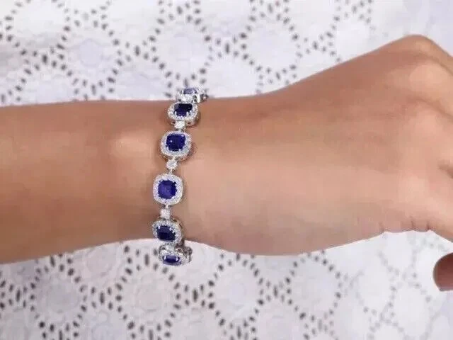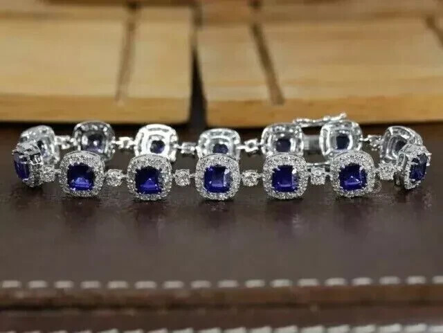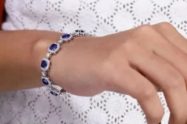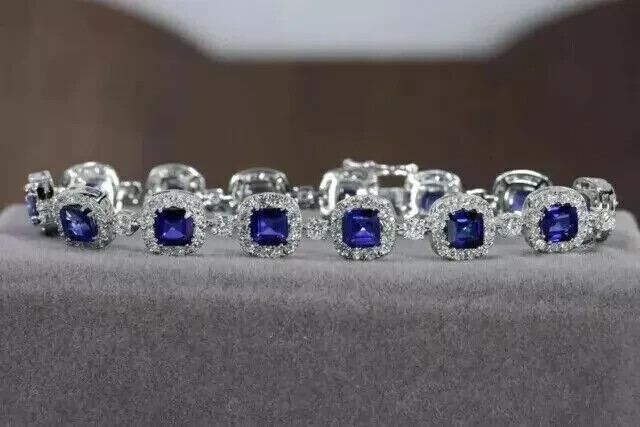 $ 194.8412Ct Cushion Lab Created Red Ruby Diamond Link Tennis Bracelet 14K White Gold FN