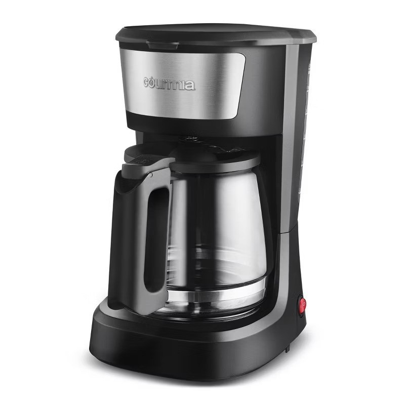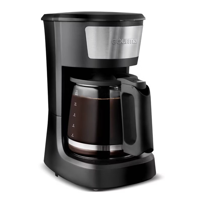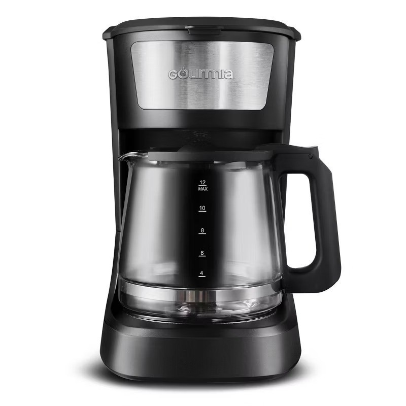 Highlights Making delicious coffee is as simple as 1, 2, 3: turn on the coffee maker, press brew, and enjoy Brew for one or a crowd with Gourmia’s 12-Cup Coffee Maker Pause the brew at any time and pour a quick cup before the rest is ready with Pause & Serve Brew in the morning and enjoy a cup anytime afterward with Automatic Keep Warm Always keep track of water levels with an EZ-View Water Window Modern design with stainless steel accents will enhance the décor of any kitchen Description Brewing coffee in your Gourmia One-Touch Coffee Maker is as simple as 1, 2, 3. Just turn it on, press brew, and enjoy. Whether you’re brewing for one or a crowd, the Gourmia Coffee Maker, which can serve 2-12 cups, is perfect for you. With Pause & Serve, you can pause a brew anytime to pour a quick cup before the rest is ready. The coffee maker was designed to save you time and accommodate even the busiest of schedules. Enjoy a cup anytime with Automatic Keep Warm, a feature which keeps brewed coffee piping hot for as long as the coffee maker is kept on. Always keep track of water levels with an EZ-View Water Window. Delicious coffee is not the only benefit you’ll receive from your Gourmia Coffee Maker. A strikingly modern design with stainless steel accents will enhance the décor of any kitchen. Get brewing with Gourmia! Specifications Dimensions (Overall): 12.12 Inches (H) x 7.71 Inches (W) x 9.84 Inches (D) Weight: 3 Pounds Capacity (Volume): 12 Cup Cup Capacity: 12 Coffee Filter Type: Basket Filter Coffee Type Used: Ground Coffee Wattage Output: 700 Watts Cup Capacity Size: 8 oz Material: Plastic, Glass Power Source: Electric Battery: No Battery Used Care & Cleaning: Care Instructions Not Provided Warranty: 1 Year Limited Warranty. To obtain a copy of the manufacturer's or supplier's warranty for this item prior to purchasing the item, please call Target Guest Services at 1-800-591-3869 TCIN : 89270806 UPC : 810002864797 Item Number (DPCI) : 072-08-6562 Origin : Imported