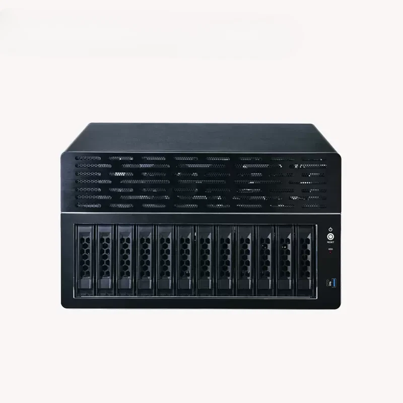 12-drive storage server supports ATX motherboards with half-height PCIE slots in hot-swappable chassis
