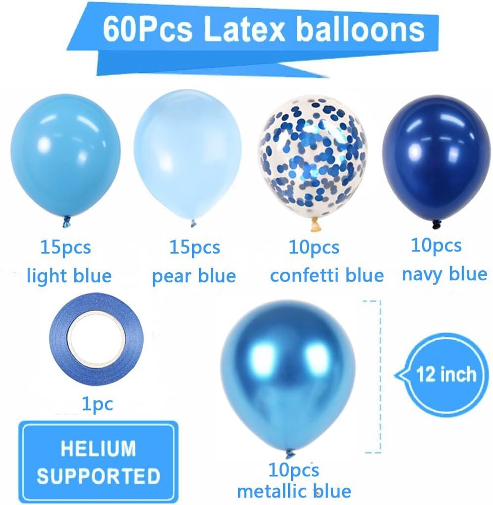 12 Inches Blue Balloons Kit Blue Baby Blue and White Party Balloons with Ribbons for Birthday Wedding Baby Shower Graduation Decorations Boy's Birthday Different Blue metal Balloons 【Blue Balloons】:You will get 60 pieces blue and light blue balloons.The birthday balloons ceatively combine blue and light blue balloons.The bright color and large amounts can meet any celebration event needs. 【Premium-Quality Balloons】:The birthday party balloons are made of high quality natural latex, can be filled with air,water or helium,non-toxic, and every balloons have been rigorously tested and selected manually, safe to be used for children.These cartoon balloons are reusable and not easy to pop.Bright color will bring the amazing and enjoyable atmosphere for you kids' themed parties. 【Widely Applications】:The vibrant balloons set is not only prefect for cartoon birthday party balloons,but also can be used as space themed or blue parties.Also the blue and orange balloons bright colors are suitable for many kinds of occasions,blue themed parties, bridal showers, weddings, baby showers, engagements, graduations, birthday parties, suitable for both indoor and outdoor events. 【Helium Supported】:The latex balloons can be used indoor and outdoors.The blue birthday balloons can float prefectly after filling with helium.Also you can apply the blue and metal blue balloons for balloons garland arch to make a fancy backdrop.The cow balloons bouquets will be prefect addition to any themed party. 【BUY WITH CONFIDENCE】 : Because there are dozens colors of balloons, there will be slight color differences due to light problems in different occasions and computer monitor problems. If you are not satisfied with our blue red yellow balloon, just tell us Shipping from the USA All of our products are shipped from the USA, ensuring quick delivery to your destination. Payment We offer the following payment methods: PayPal, credit card, bank transfer, and eBay's secure payment system. Free Shipping & Free Returns Shipping within the USA is FREE. Additionally, any return is absolutely free for you. Risk-Free Purchase You have the option to return an item within 30 days without any justification. We cover the return shipping costs! Fast Shipping We ship immediately upon receipt of payment. Generally, the package is delivered within 2-3 days in the USA. If it takes longer, we will contact you. Quality and Costs Made in Europe, USA, China No customs fees or additional charges Total satisfaction guarantee Invoice with declared VAT available upon request in .pdf format Feedback Your feedback is very important to us. After you pay for your purchase, you will automatically receive positive feedback from us.