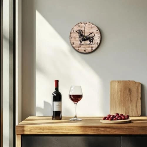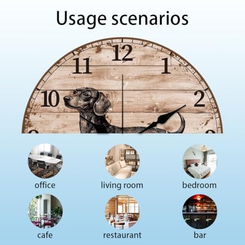 Return Policy Fast Delivery Trusted seller 12inch Sausage Dog Wall Clock Vintage Style Pattern Battery Operated Silent Non Ticking Round Decorative Clock for Office Home Kitchen Decor Product Description Sausage Dog Design: The wall clock is designed with animal elements, incorporating puppies and wooden cracks into your home décor, the perfect colour combination to bring your living room and bedroom to life Silent and Non-ticking: Fiber wood wall clocks do not produce obvious ticking sound when running, can create a peaceful environment for people, suitable for placing in the bedroom, study and other places that need to be quiet Fiber Wood Material: The wall clock is made of fiber wood material. It has a sturdy structure and can be used for a long time with proper maintenance. Which is lightweight and won't damage the wall. The product size is 12 inch/30cm Wide Applications: Fiber wood wall clocks are ideal for college dormitories, kitchens, offices, conference rooms, living rooms, bedrooms, or any space that creates a natural and comfortable living atmosp Exquisite Gift: The battery operated wall clock is best gift choice for, housewarming, anniversaries, Mother's Day, Father's Day, Easter and other festivals. (Powered by one AA battery, battery is not included in the package) Shipping Returns Payment Shipping Shipping is FREE to all addresses other than APO/PO boxes in the lower 48 states. All our stock ships from US-based warehouses. Shipped via USPS or UPS (depending on location and package weight) Unless stated otherwise, all orders will ship within 24-72 hours of your payment being processed. Check our feedback to see the great reviews of FAST shipping we offer. Returns Seller does not accept returns Payment We currently accept payment via eBay managed payments only. Once payment is cleared, we will dispatch your shipment within 1-3 business days. Please refer to the "Shipping" tab for more information regarding shipping speed to your destination.
