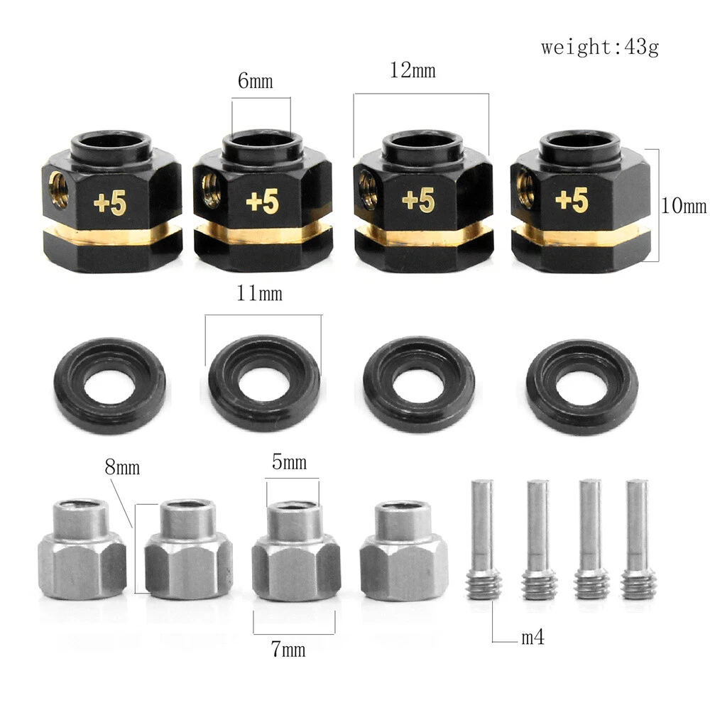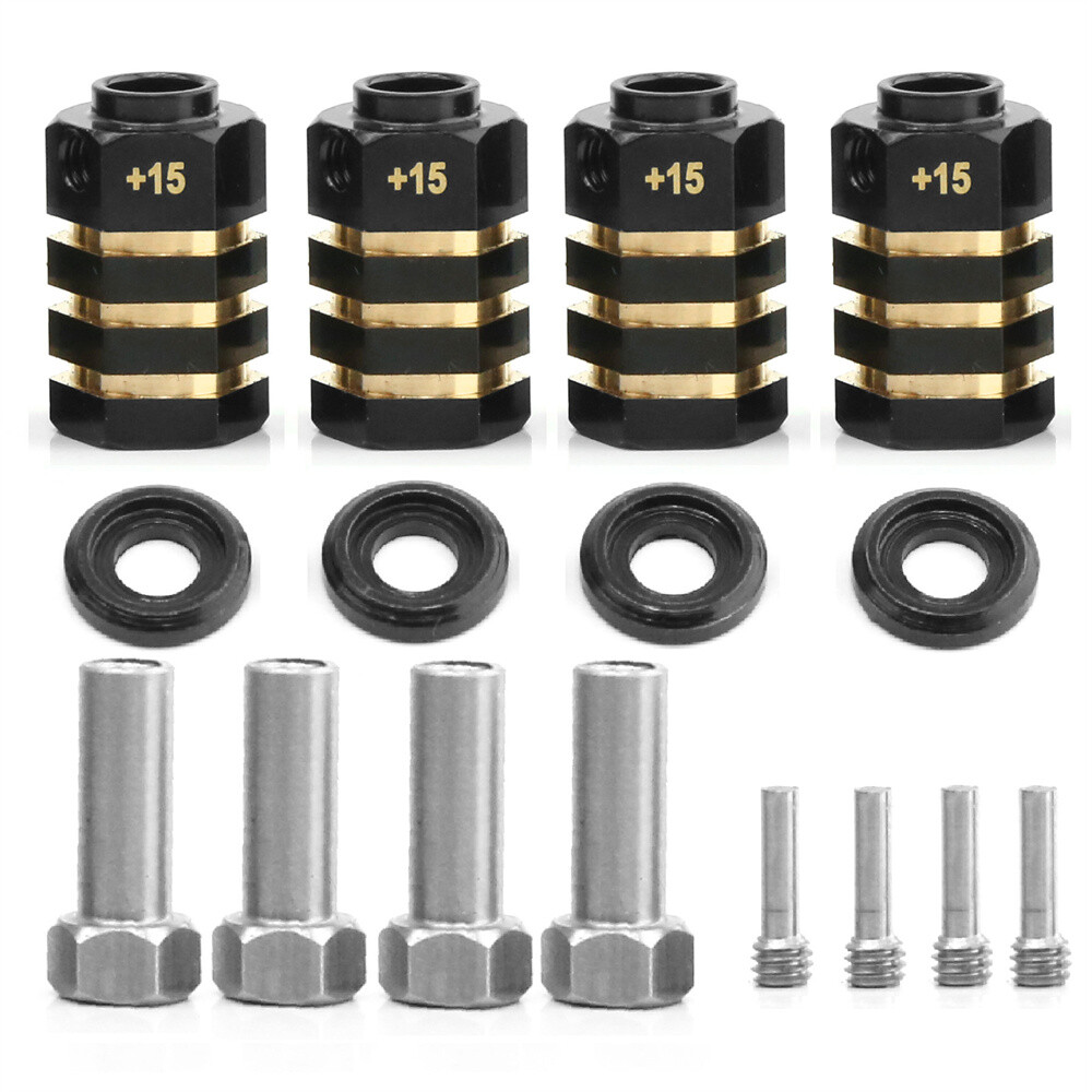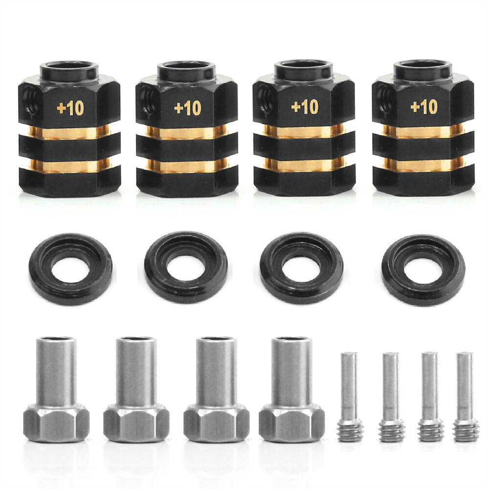 Product Description If you have any questions, please contact customer service first, do not open disputes easily, thank you! Features: High quality for professional use High quality brass, fine workmanship and durable It helps to widening the distance of the wheel, improve the stability of the vehicle, high strength of the fixing tip, not easy to twist and slip Heavier brass, lower the center of gravity, adds a touch of weight to your tires to improve grip Specification: Material: Brass Thread: M4 Hex: 12mm Types (Optional): +3mm, +5mm, +10mm, +15mm Size: as Shown Quantity: 1 Set Applicable Models: for Traxxas TRX4 TRX6 Attention: As shown in the picture, the matching parts are different due to different sets, thanks! Package includes(optional): 1 Set*Wheel Adapter About Us We accept all payments authorized by eBay. powered by