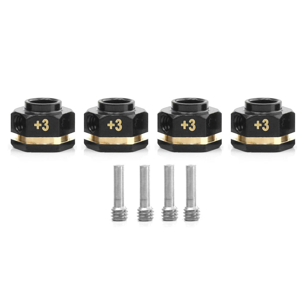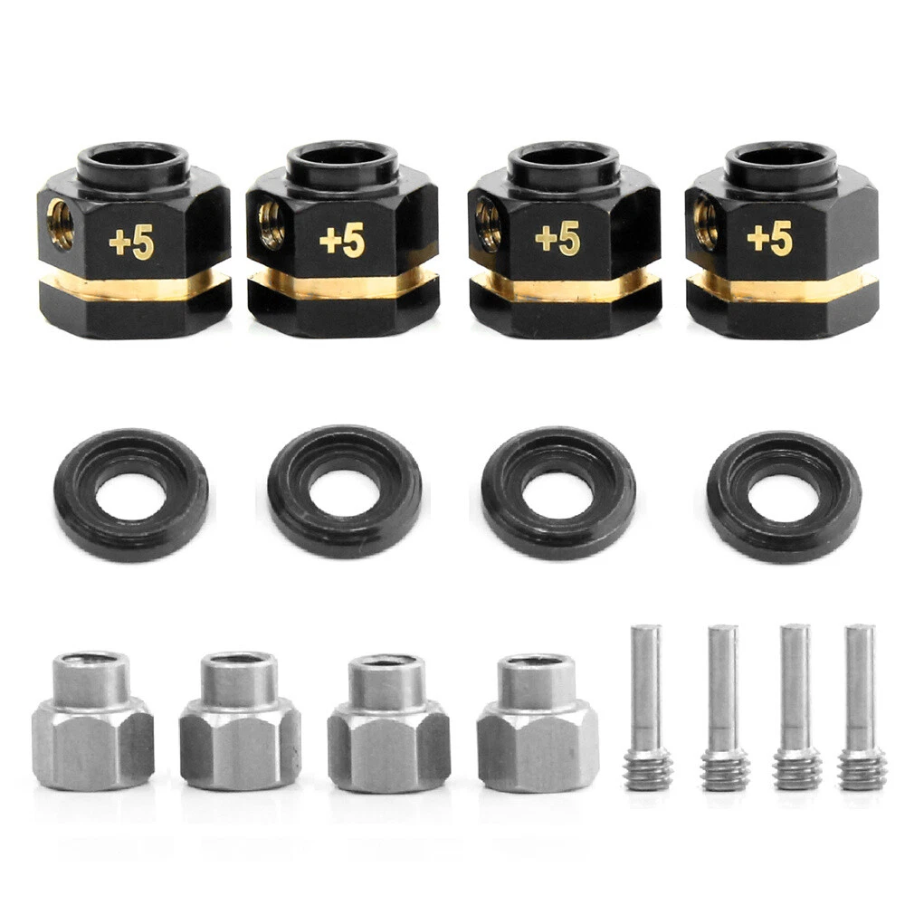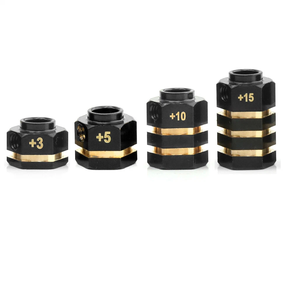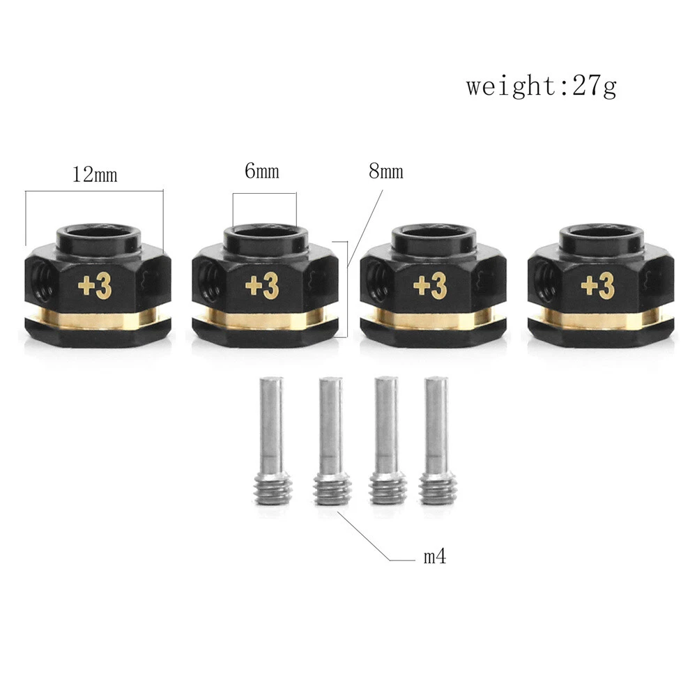 Product Description If you have any questions, please contact customer service first, do not open disputes easily, thank you! Features: High quality for professional use High quality brass, fine workmanship and durable It helps to widening the distance of the wheel, improve the stability of the vehicle, high strength of the fixing tip, not easy to twist and slip Heavier brass, lower the center of gravity, adds a touch of weight to your tires to improve grip Specification: Material: Brass Thread: M4 Hex: 12mm Types (Optional): +3mm, +5mm, +10mm, +15mm Size: as Shown Quantity: 1 Set Applicable Models: for Traxxas TRX4 TRX6 Attention: As shown in the picture, the matching parts are different due to different sets, thanks! Package includes(optional): 1 Set*Wheel Adapter About Us We accept all payments authorized by eBay. powered by