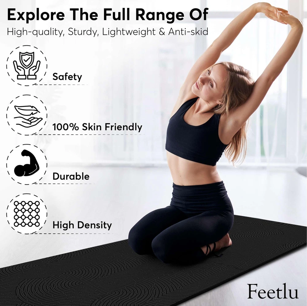 🌹【Eco-Friendly & ITS Certified】The Yoga Mat is made from premium POE eco-friendly material, certified by ITS and meeting SGS standards. It is free from PVC, latex, and heavy metals, ensuring a fresh, odor-free yoga experience. 🌹【3D Surface & Double Layer Anti-Tear】Enjoy a slip-free practice with our ultra-grip surface, perfect for yoga, Pilates, and fitness routines. Achieve stability and durability, ensuring confidence in every workout. 🌹【Rebound Feature & Double Layer Anti-Tear】No Sliding or Slipping: The ultra-grip surface ensures slip-free practice. Ideal for all types of yoga, Pilates, fitness exercises, and other workout routines. 🌹【Yoga Mat with Strap & Extra Thick】Measuring 74" x 26" and 12mm thick, this 4.4 lbs yoga mat suits all levels. Includes a free eco-material yoga strap for stylish transport to the gym or anywhere. 🌹【Care Instructions & Warranty】 We hope customers enjoy products and begin a yoga journey. Please take a look at our Instructions. Spot clean with a damp cloth (wet) with cold water and mild detergent, dry flat. Please store out of direct sunlight.