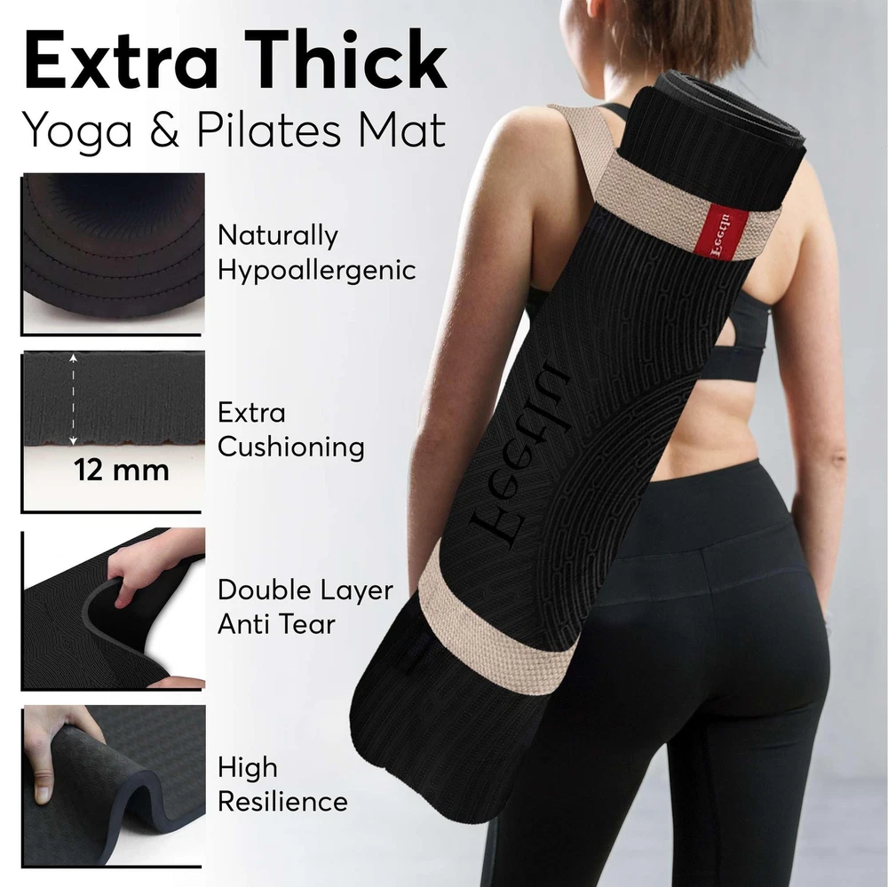 12mm Thick Yoga Mat with Strap – Non-Skid Dual Surface, Eco-Friendly POE, for...