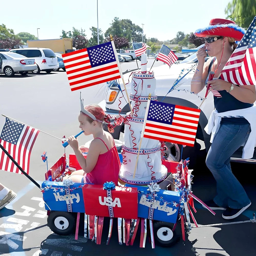 100% Money Back Guarantee if you are not satisfied with your purchase! ____________________ Description: 12Pcs 8×12 Inch Small American Flags on Stick Mini USA Flags US Handheld Flag Outdoor Decorations ● SPECIFICATIONS - 8×12 Inch American flags, 17.5" Inch wooden stick with staff safety golden spear top. ● DURABLE - Imported. Made of 100% polyester and Wooden stick,Special stitching technology, the joint between the flag and the stick is not easy to tear. ● WEATHER-RESISTANT DESIGN - Looking for small stick flags on sticks for decorations your classroom,patio, garden? Our flag It's not easy to fade to withstand rain or shine. ● NOTE - Our flag and flagpoles are separated and you need to assemble it by yourself. ● LARGE SIZE - Each flag measures 8×12", 17.5" wooden stick,longer than most flagpoles of the same size countries flag,providing substantial visual impact, they're perfect for hands to wave or inserting into the ground. 100% Money Back Guarantee: We offer 30 Day Money Back Guarantee from the day you purchased if you’re not satisfied with your product. If you have any questions about our products, please contact us as soon as possible. Customer satisfaction is our absolute priority. Shipping: We are always working hard to ensure your package arrives as soon as possible. Please understand that some factors like weather, high postal traffic, and the performance of shipping companies are outside of our control. We offer free shipping to the lower 48 states and ship within 3 business days of payment, usually sooner. We do not accept P.O. Boxes. Please provide a physical address. You will be notified via eBay messages as soon as your items ship. Delivery: We will ship out the item in 2-3 working day after receiving the payment. Usually the delivery takes 2-5 business days. If you don't receive the items after 10 days, please feel free to contact us. You will get a replacement or a full refund. Please DO NOT open a return request or leave negative feedback without asking for help. Returns (Get Free Return Label): We offer a 30-Day Return Policy on defective/wrong items or items which you are not completely satisfied with. You have the option for a full-refund or an exchange of the item. No need to buy eBay return label. Contact us via eBay messages and get free return label. Returned items must be in all of the original packaging and include all of the original accessories or items that came with it. The item and package should be in original condition. Contact Us: Any queries or issues incurred, please feel free to contact us via eBay message, we will get back to you within 24 hours. Please DO NOT open a return request or leave negative feedback without asking for help. Feedback: Your feedback is very important to us. After you get your package and you are satisfied with our service, please leave us positive feedback. We are highly appreciated for your POSITIVE feedback and 5 stars. Enjoy shopping.