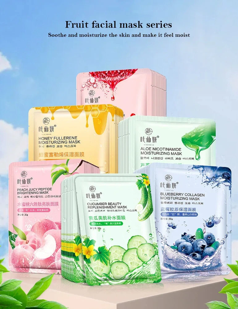 These facial masks are amazing! My skin feels so hydrated and refreshed after using them. The material is super soft and fits perfectly without slipping. The essence is rich but not sticky, leaving my face plump and glowing. I love the variety of fruity options—each one feels like a spa treatment at home. Great value for 12 high-quality masks!