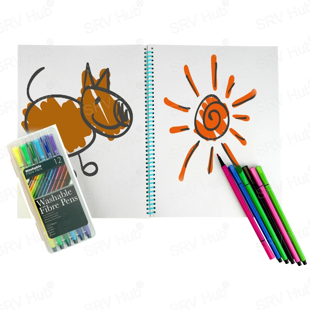 12Pcs Washable Fibre Felt Tip Coloring Brush Pen Drawing Painting Kids Art Craft Specification: Product Material: Package Dimensions: 17.5cm x 8cm (L x W) Quantity: 12Pcs Description: There are Different Colors in This Pack. These are Water Based ink color those can be easily removed from Clothes. High-quality ink, non-toxic, washable and safe to use for children. These Pens are best choice for Drawing, Coloring and Studying. Plastic made storage case to keep Color safe. Bullet tipped nib for a smooth flow of ink. Perfect For Children & Adults. This package contains 12x Fibre Pens.