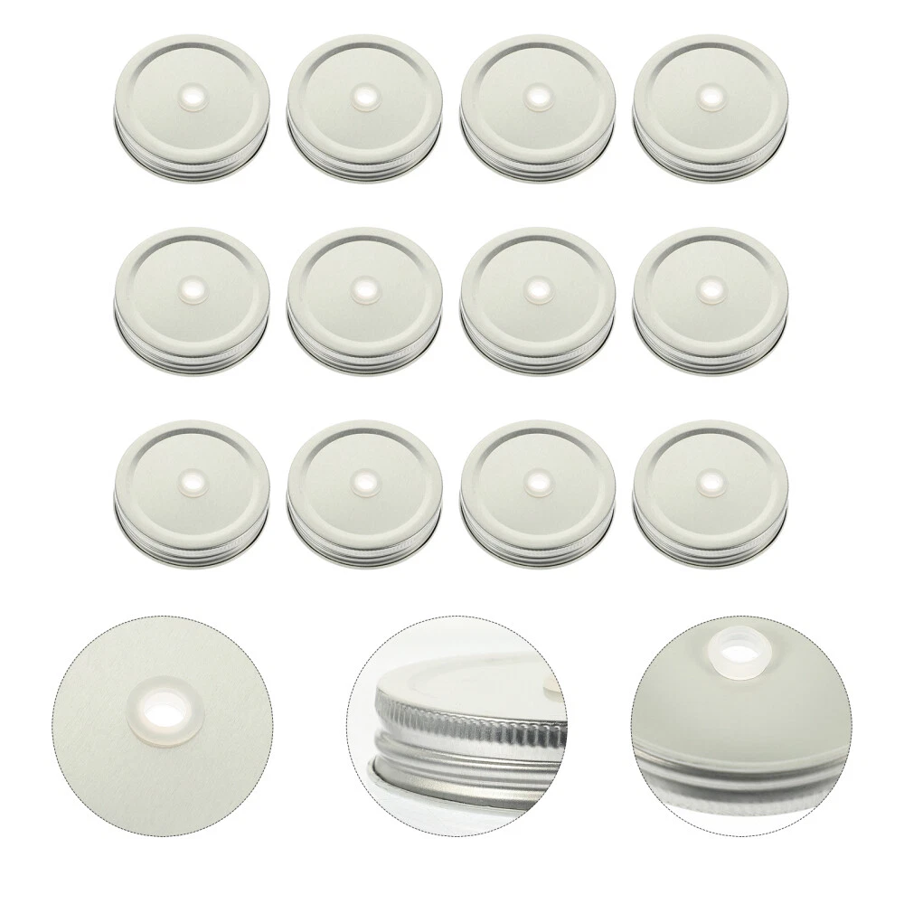 12pcs Leak Proof Canning Caps Convenient Mason Jar Straw Lids Mason Cup Covers